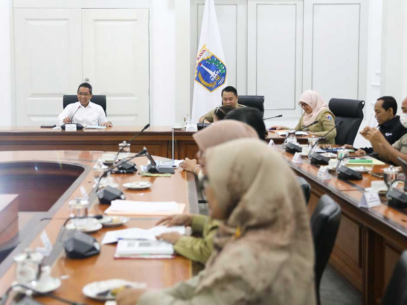 Penjabat (Pj) Gubernur DKI Jakarta, Heru Budi Hartono, menggelar rapat pimpinan (Rapim) di Ruang Rapim Utama, Balai Kota DKI Jakarta, Selasa (3/1). Rapat tersebut membahas proyek pembangunan berkelanjutan National Capital Integrated Coastal Development (NCICD) di sepanjang pesisir di sepanjang pesisir Jakarta. (Foto: Nugroho Sejati/beritajakarta.id)