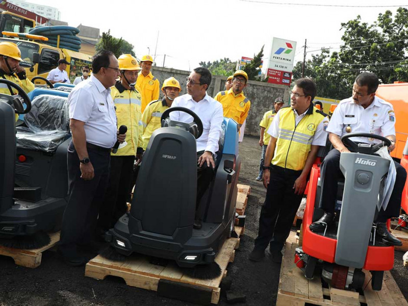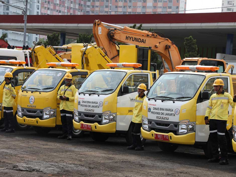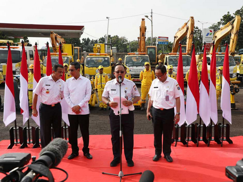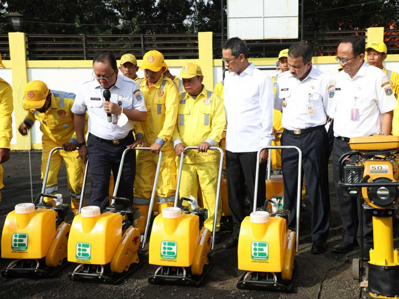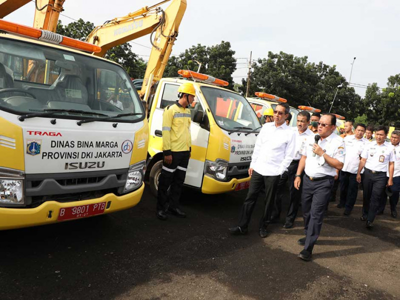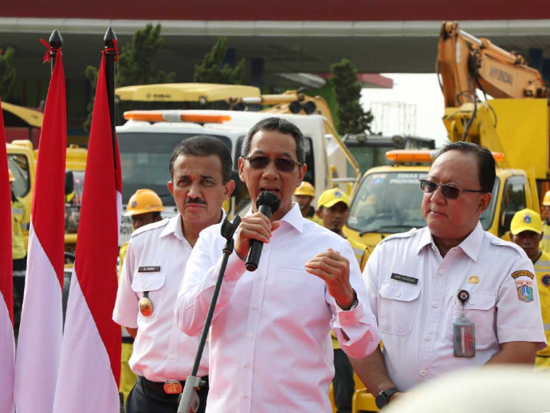 Penjabat (Pj) Gubernur DKI Jakarta, Heru Budi Hartono menghadiri penyerahan peralatan serta Kendaraan Dinas Operasional (KDO) Satuan Petugas (Satgas) Bina Marga di Pool Alkal Pulo Gebang, Cakung, Jakarta Timur, Rabu (4/1). Heru Budi Hartono mengimbau Dinas Bina Marga bergerak cepat dalam mengantisipasi dampak cuaca ekstrem di Jakarta. (Foto: Reza Hapiz/beritajakarta.id)