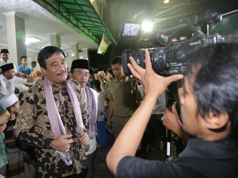 Wakil Gubernur DKI Jakarta, Djarot Saiful Hidayat melakukan kegiatan Safari Ramadhan di Masjid Al-Ikhlas, Jalan Amil, RT 03/004, Kelurahan Pejaten Barat, Kecamatan Pasar Minggu, Jakarta Selatan, Selasa (23/06/2015). Selain melakukan buka Puasa bersama dan menunaikan Sholat Maghrib, dalam kesempatan tersebut Djarot juga menunaikan Sholat Isya dan Tarawih. Mantan Walikota Blitar ini juga menyerahkan sumbangan untuk kemakmuran masjid dan membagi-bagikan buku tulis kepada anak-anak.(Foto: Reza / Beritajakarta.com)
