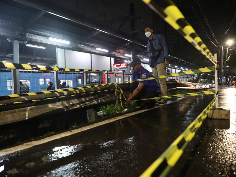 Ruas Jalan Tebet Timur Dalam XI, RT 11/06, Kelurahan Tebet Timur, Tebet, Jakarta Selatan ditutup akibat longsornya turap Saluran Penghubung (Phb) Cawang. Penutupan sementara ini dilakukan demi keamanan pengendara yang hendak melintasi kawasan tersebut. Untuk diketahui, turap Saluran Phb Cawang mengalami longsor sepanjang 15 meter akibat dilanda hujan deras sekitar pukul 17.00 WIB. (Foto: Mochamad Tresna Suheryanto/beritajakarta.id)