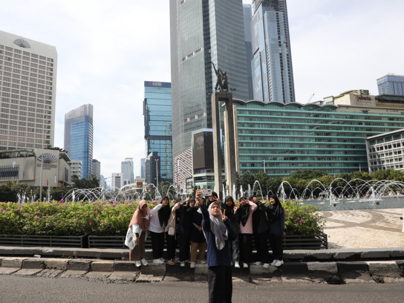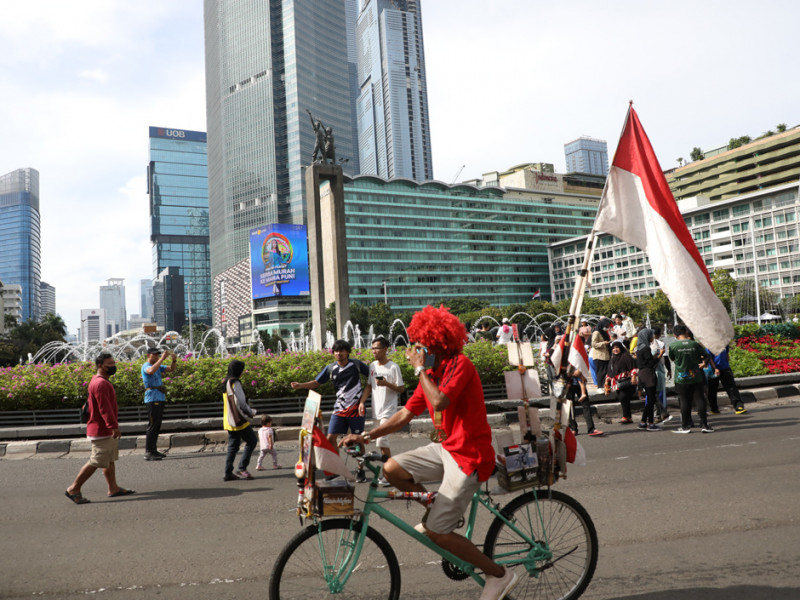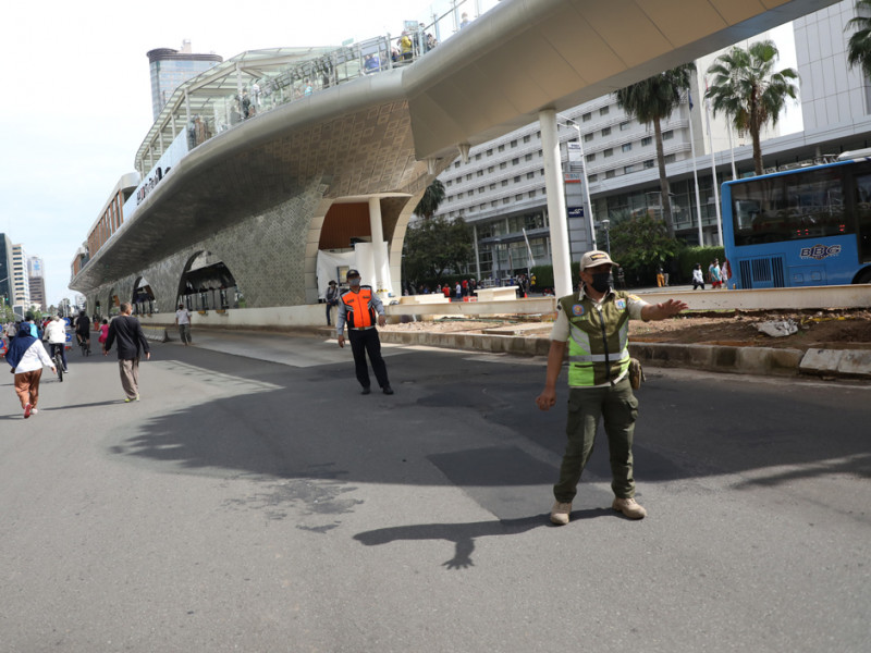 Kawasan Bundaran Hotel Indonesia (HI), Jakarta Pusat, Minggu (8/1), dipadati warga yang tengah menikmati kegiatan Hari Bebas Kendaraan Bermotor (HBKB). Kegiatan ini kembali digelar setelah ditutup sementara bertepatan dengan libur Natal dan Tahun Baru 2023. (Foto: Mochamad Tresna Suheryanto/beritajakarta.id)