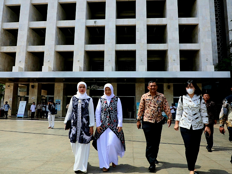 Penjabat (PJ) Ketua TP PKK DKI Jakarta, Mirdiyanti mendampingi Istri Perdana Menteri (PM) Malaysia Anwar Ibrahim, Wan Azizah Wan Ismail kunjungi Masjid Istiqlal dan Gereja Katedral, Jakarta Pusat, Senin (9/1). Dua tempat ibadah ini dipilih karena menjadi simbol toleransi beragama di Indonesia.(Photo:Mochamad Tresna Suheryanto/beritajakarta.id)