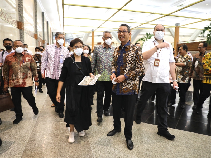 Penjabat (Pj) Gubernur DKI Jakarta, Heru Budi Hartono dan Menteri Luar Negeri (Menlu) RI, Retno Marsudi melakukan peninjauan lapangan terkait persiapan Konferensi Tingkat Tinggi (KTT) ASEAN 2023 di Jakarta Convention Center (JCC) Senayan, Jakarta Pusat, Kamis (12/1). Peninjauan dilakukan untuk mempersiapkan venue-venue yang akan digunakan oleh para delegasi KTT ASEAN. (Foto: Nugroho Sejati/beritajakarta.id)