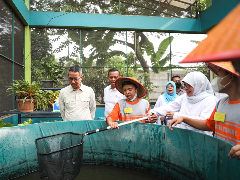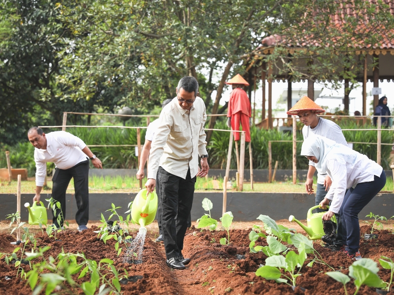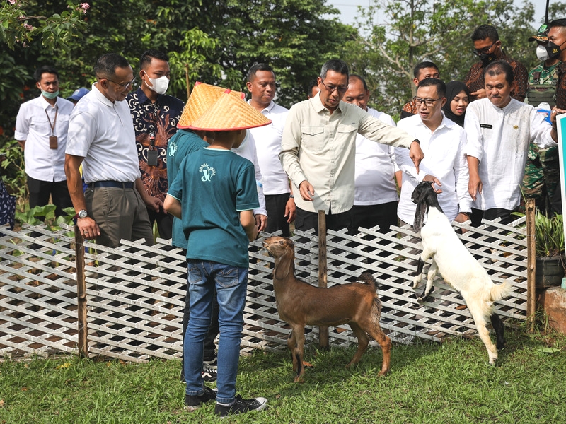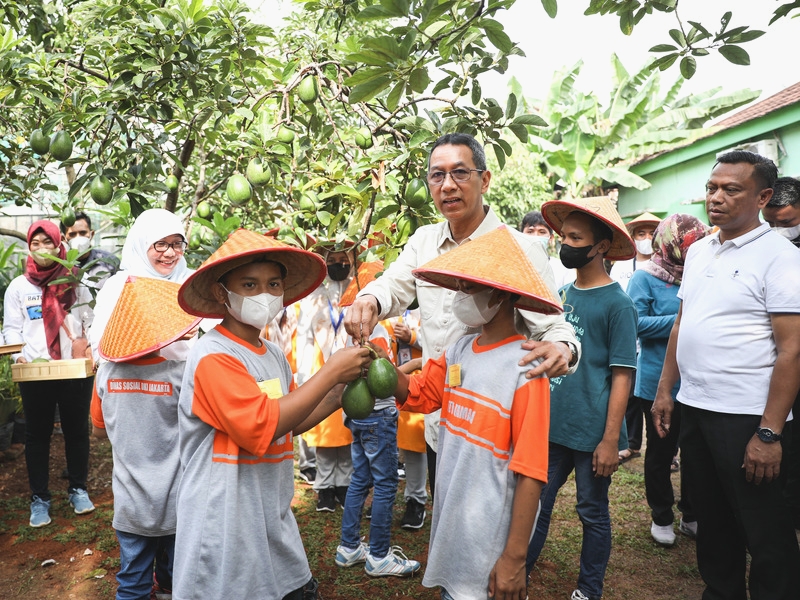 Penjabat (Pj) Gubernur DKI Jakarta, Heru Budi Hartono berwisata agroedukasi bersama anak panti asuhan binaan Dinas Sosial DKI Jakarta di Agro Edukasi Wisata (AEW) Ragunan, Jakarta Selatan, Jumat (13/1). Kegiatan wisata ini selain melihat menjaga ketahanan pangan juga menjadi perkenalan kepada anak-anak terhadap dunia pertanian dan peternakan. (Foto: Nugroho Sejati/beritajakarta.id)