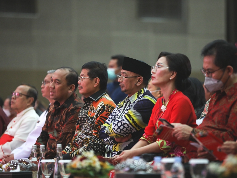 Penjabat (Pj) Gubernur DKI Jakarta, Heru Budi Hartono menghadiri perayaan Natal Pemerintah Provinsi (Pemprov) DKI Jakarta di Ecovention Ancol, Jakarta Utara, Jumat (13/1). Perayaan Natal bertema \"Cahaya Jakarta untuk Indonesia\" juga dihadiri Ketua DPRD DKI Jakarta, Prasetyo Edi Marsudi, Pj Sekda DKI Jakarta, Uus Kuswanto, Deputi Gubernur Bidang Budaya dan Pariwisata, Marullah Matali serta jajaran Pemprov lainnya. (Foto: Nugroho Sejati/beritajakarta.id)