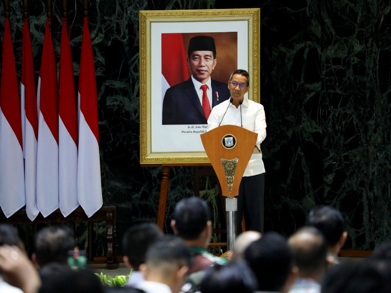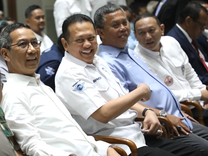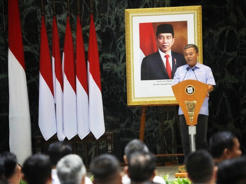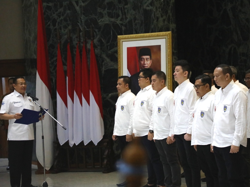 Penjabat (Pj) Gubernur DKI Jakarta, Heru Budi Hartono menghadiri pelantikan 29 anggota pengurus Ikatan Motor Indonesia (IMI) DKI Jakarta masa bakti 2021-2025 oleh Ketua Umum IMI Pusat, Bambang Soesatyo, di Balai Kota Jakarta, Jakarta Pusat, Senin (16/1). Hadir juga dalam pelantikan ini Ketua DPRD DKI Jakarta, Prasetyo Edi Marsudi; Kapolda Metro Jaya, Irjen Pol Fadil Imran; Pangdam Jaya, Mayjen TNI Untung Budiharto; Ketua IMI DKI Jakarta, Anondo Eko; serta Deputi Gubernur Bidang Kebudayaan dan Pariwisata DKI Jakarta, Marullah Matali.(Photographer: Mochamad Tresna Suheryanto/beritajakarta.id)