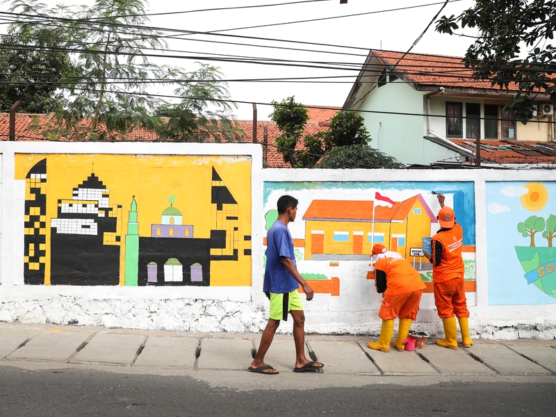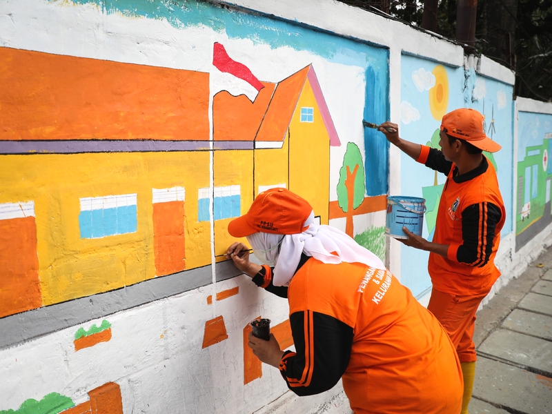 PPSU Kramat Jati Percantik Jalan Kerja Bakti dengan Mural