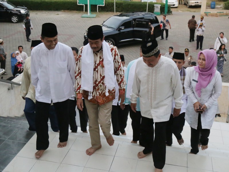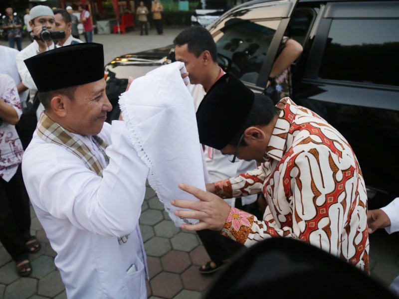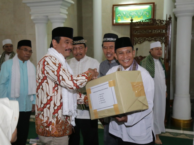 Wakil Gubernur DKI Jakarta, Djarot Saiful Hidayat melakukan kegiatan Safari Ramadhan di Masjid Al-Muhtadun, Kelurahan Kelapa Dua Wetan, Kecamatan Ciracas Jakarta Timur, Kamis (25/06/2015). Selain melakukan buka puasa bersama dan menunaikan sholat Maghrib, dalam kesempatan tersebut Djarot juga menyerahkan sumbangan renovasi masjid, kitab suci Al-Quran dan membagikan peralatan olahraga. (Foto: Reza/beritajakarta.com)