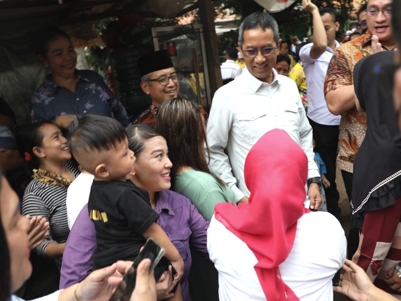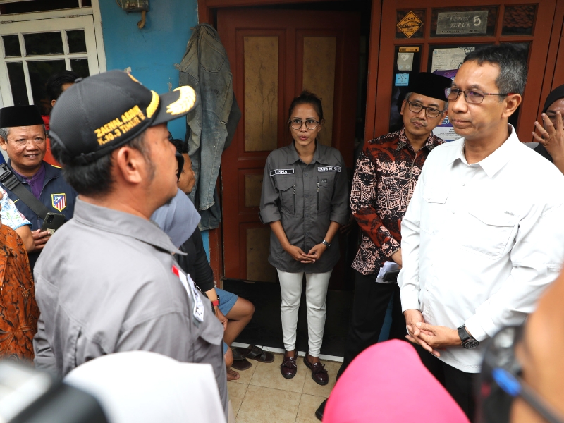 Penjabat (Pj) Gubernur DKI Jakarta, Heru Budi Hartono meninjau kawasan Kali Pesanggrahan di Jl Haji Briti, Kembangan Selatan, Kembangan, Jakarta Barat, Kamis (19/1). Peninjauan untuk mengecek kondisi Kali Pesanggrahan yang rencananya akan dinormalisasi dengan dibangun dinding penahan (sheet pile) sepanjang 1.400 meter untuk mengatasi limpahan aliran kali.(Photographer: Mochamad Tresna Suheryanto/beritajakarta.id)