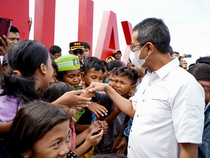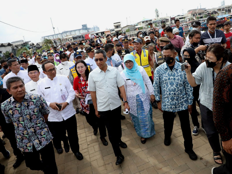 Warga Cilincing antusias menyambut kedataan Penjabat (Pj) Gubernur DKI Jakarta, Heru Budi Hartono saat meninjau tanggul National Capital Integrated Coastal Development (NCICD) di Kalibaru, Cilincing, Jakarta Utara, Jumat (20/1). Para warga berkumpul dan berebut untuk berjabat tangan dengan orang nomer satu di DKI Jakarta, mulai dari anak-anak hingga orang dewasa. Dalam kesempatan ini Heru memastikan akan ada Ruang Terbuka Hijau (RTH) dan ruang terbuka publik di kawasan ini. (Photo: Mochamad Tresna Suheryanto/beritajakarta.id)