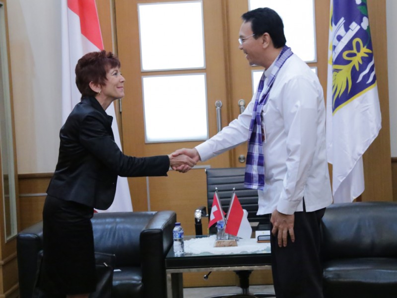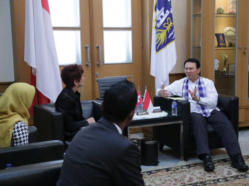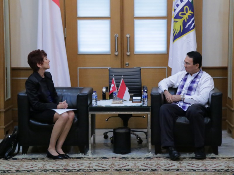 Gubernur DKI Jakarta, Basuki Tjahaja Purnama menerima kunjungan Duta Besar (Dubes) Swiss untuk Indonesia, Yvonne Baumann, di Balaikota DKI Jakarta, Jalan Medan Merdeka Selatan, Gambir, Jakarta Pusat, Jumat (26/06/2015). Kunjungan Dubes Swiss ini dalam rangka perkenalan sekaligus mengundang Basuki untuk hadir di acara Perayaan Kemerdekaan Negara Swiss. (Foto: Yopie/beritajakarta.com)