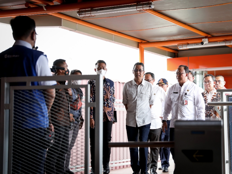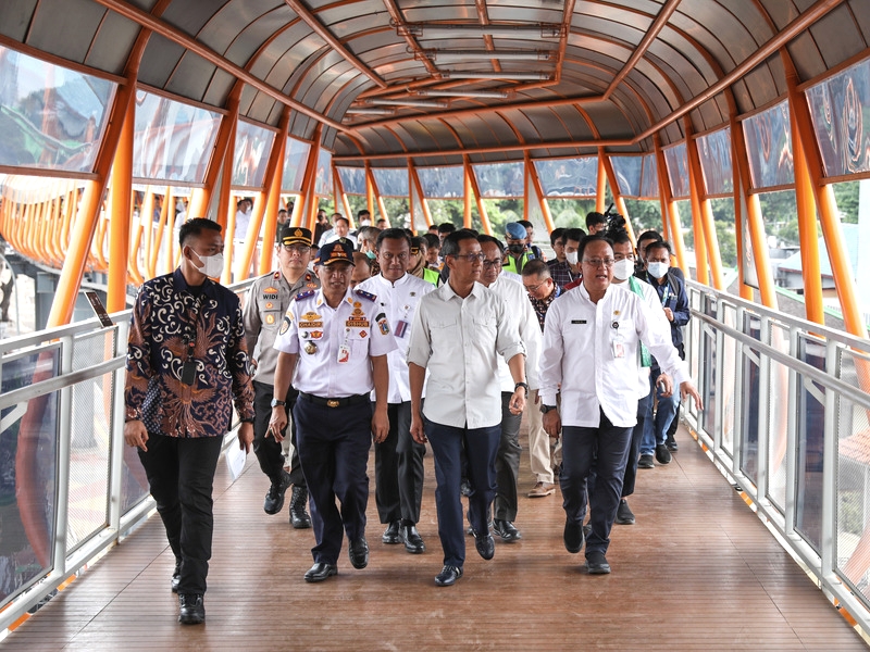 Penjabat (Pj) Gubernur DKI Jakarta, Heru Budi Hartono meresmikan Skywalk Kebayoran, Jakarta Selatan, Jumat (27/1). Skywalk Kebayoran dibangun sebagai sarana integrasi antara Stasiun KRL Kebayoran, Halte Transjakarta Velbak, dan Halte Transjakarta Pasar Kebayoran. (Foto: Nugroho Sejati/beritajakarta.id)