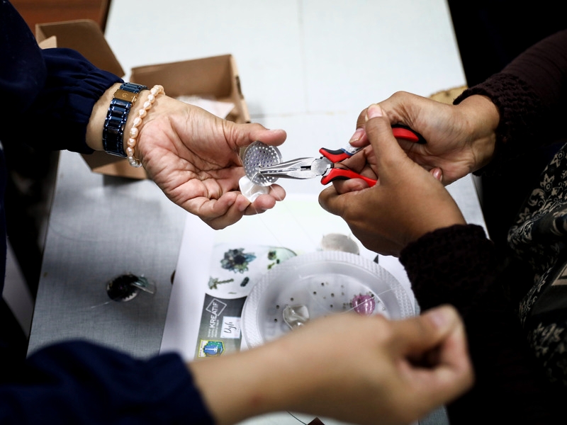 Sebanyak 15 orang anggota binaan Jakpreneur mengikuti pelatihan membuat bros di Tempat Kumpul Kreatif (TKK) Centex, Ciracas, Jakarta Timur, Senin (30/1). Kegiatan pelatihan diadakan oleh Suku Dinas Perindustrian, Perdagangan, Koperasi, Usaha Kecil dan Menengah (PPKUKM) Jakarta Timur dengan durasi satu hari. (Foto: Nugroho Sejati/beritajakarta.id)