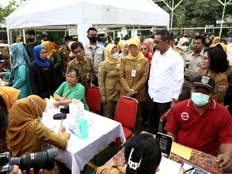 Penjabat (Pj) Gubernur DKI Jakarta, Heru Budi Hartono mengecek langsung kondisi stunting dan penanganannya di Ruang Publik Terpadu Ramah Anak (RPTRA) Triputra Persada Hijau, Semper Barat, Cilincing, Jakarta Utara, Selasa (31/1).Turut hadir dalam kunjungan tersebut Kepala Dinas Kesehatan DKI Jakarta, Widyastuti dan Wali Kota Jakarta Utara, Ali Maulana Hakim. Setelah mengecek langsung ke lokasi, PJ Gubernur Heru menyampaikan data terkini bayi yang dinilai rawan stunting. (Photo: Mochamad Tresna Suheryanto/beritajakerta.id)