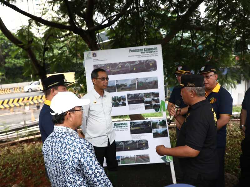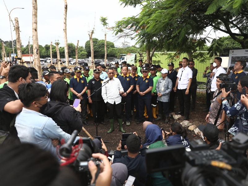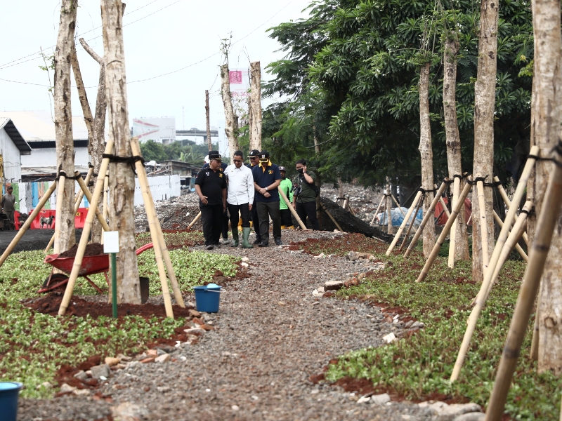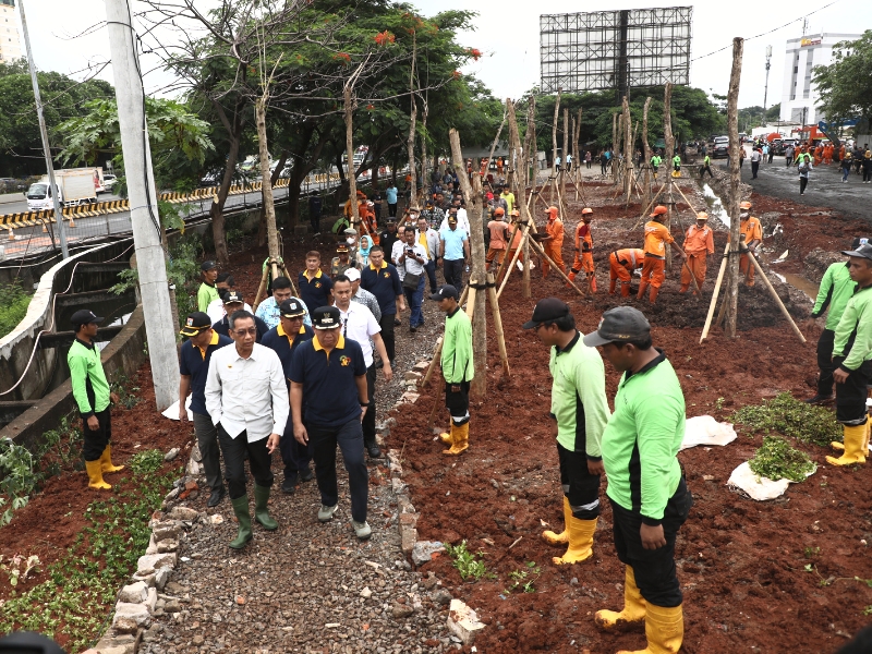 Penjabat (Pj) Gubernur DKI Jakarta, Heru Budi Hartono menghadiri kegiatan penataan kawasan di pergudangan Pluit, sisi Tol Bandara Soekarno-Hatta (Soeta), Pejagalan, Penjaringan, Jakarta Utara, Kamis (2/2). Penataan ini dilakukan sebagai komitmen Pemprov DKI Jakarta dalam memenuhi target ketersediaan RTH sebesar 30 persen pada 2030 serta memperindah lahan sisi tol menjelang KTT ASEAN 2023. (Photo: Mochamad Tresna Suheryanto/beritajakarta.id)