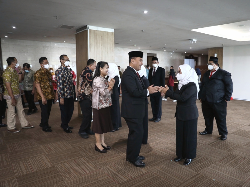 Penjabat Sekretaris Daerah (Pj Sekda) Provinsi DKI Jakarta, Uus Kuswanto melantik sembilan anggota Badan Penyelesaian Sengketa Konsumen (BPSK) DKI Jakarta Periode 2022-2027 di Balai Kota DKI Jakarta, Gambir, Jakarta Pusat, Jumat (3/2). Sembilan anggota BPSK yang dilantik ini terdiri dari unsur pemerintah, unsur konsumen, dan unsur pelaku usaha. (Foto: Nugroho Sejati/beritajakarta.id)