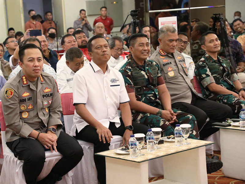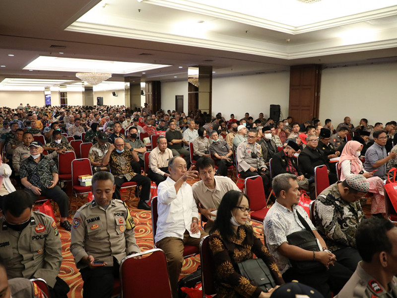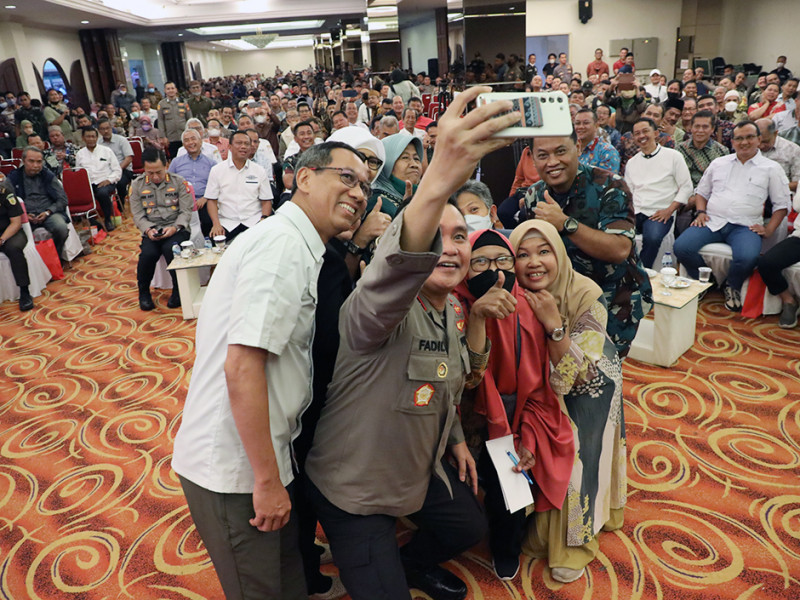 Penjabat (Pj) Gubernur DKI Jakarta, Heru Budi Hartono bersama Kapolda Metro Jaya, Irjen Pol Fadil Imran dan Pangdam Jaya, Mayjen TNI Untung Budiharto menghadiri Guyub Ketua Rukun Warga (RW) se-Jakarta Selatan di Ballroom Mall Boutique, Kuningan Timur, Setiabudi, Minggu (5/1). Pada kesempatan itu, Heru mengimbau seluruh perangkat RT/RW, Bhayangkara Pembina Keamanan dan Ketertiban Masyarakat (Bhabinkamtibmas), dan Bintara Pembina Desa (Babinsa) agar menjaga keamanan, kebersihan, serta melayani masyarakat dengan baik. (Foto: Mochamad Tresna Suheryanto/beritajakarta.id)