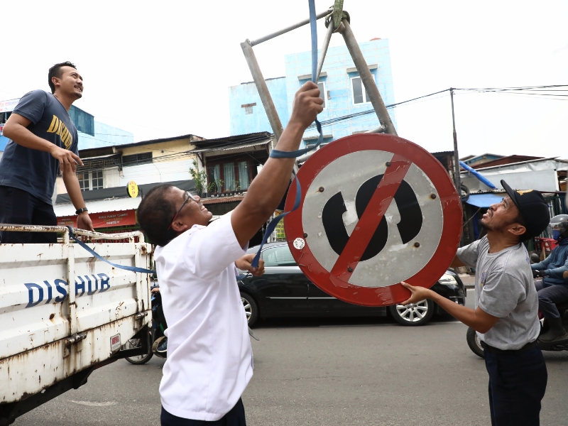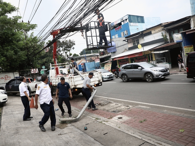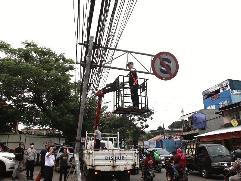 Sudinhub Jaksel Evakuasi Tiang Rambu Lalu Lintas yang Rusak di Jalan RC Veteran
