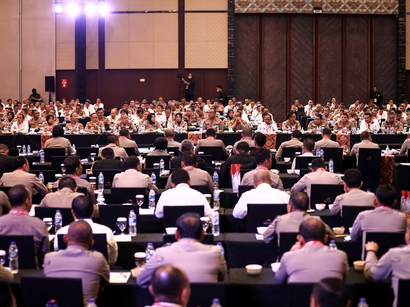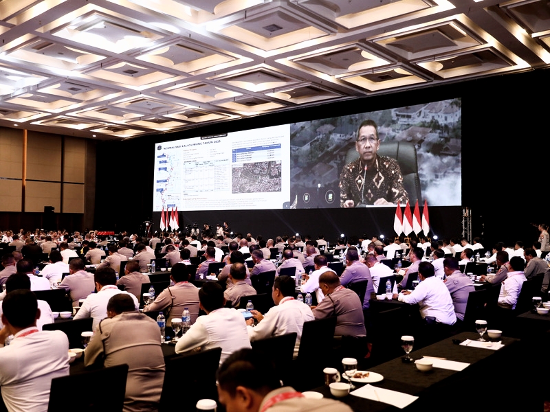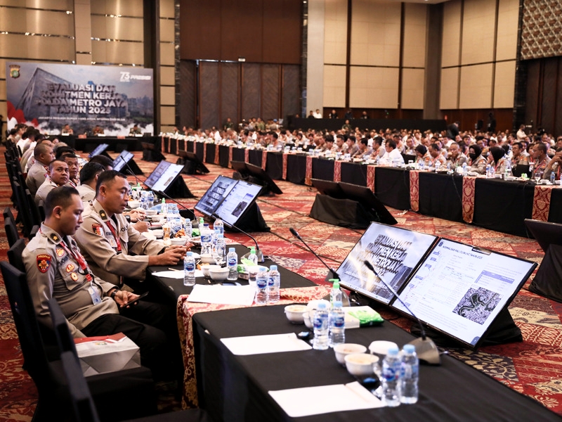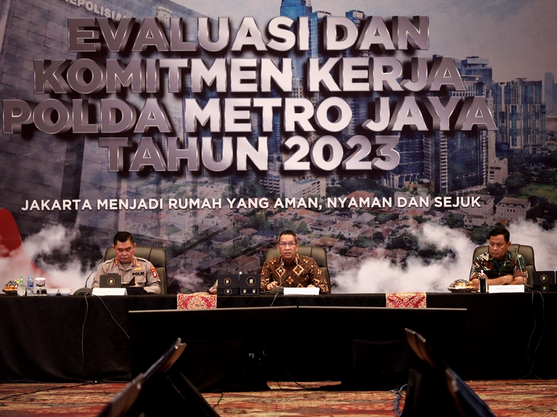 Penjabat (Pj) Gubernur DKI Jakarta, Heru Budi Hartono menghadiri Evaluasi dan Komitmen Kerja Polda Metro Jaya Tahun 2023 di Gedung Nusantara Hall ICE BSD City, Tangerang, Banten, Senin (6/2). Dalam evaluasi dan komitmen kerja ini, Pj Gubernur meminta dukungan Polda Metro Jaya dalam pelaksanaan program kerja Pemerintah Provinsi DKI Jakarta tahun 2023 seperti untuk mengantisipasi segala bentuk potensi gangguan keamanan dan ketertiban masyarakat (kamtibmas).(Foto: Nugroho Sejati/beritajakarta.id)
