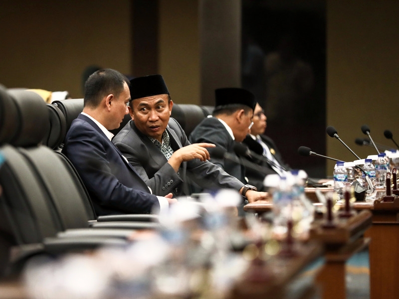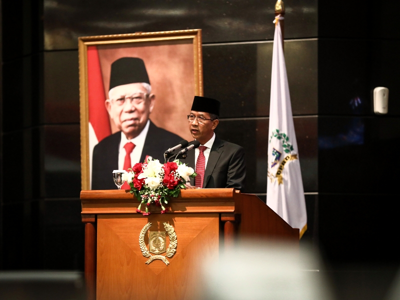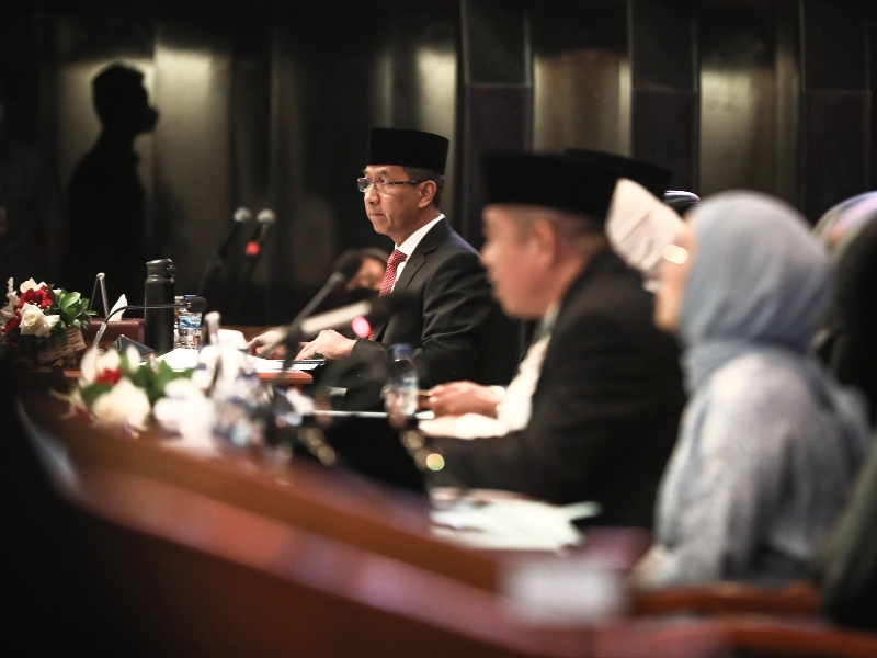 Penjabat (Pj) Gubernur DKI Jakarta, Heru Budi Hartono menghadiri Rapat Paripurna DPRD DKI Jakarta di Ruang Rapat Paripurna DPRD DKI Jakarta, Gambir, Jakarta Pusat, Senin (6/2). Rapat Paripurna ini beragendakan pengesahan Rancangan Peraturan Daerah (Raperda) Perubahan Bentuk Hukum Perseroan Terbatas Penjaminan Kredit Daerah Jakarta (PT Jamkrida), menjadi PT Jamkrida Perseroan Daerah (Perseroda).(Foto: Nugroho Sejati/beritajakarta.id)