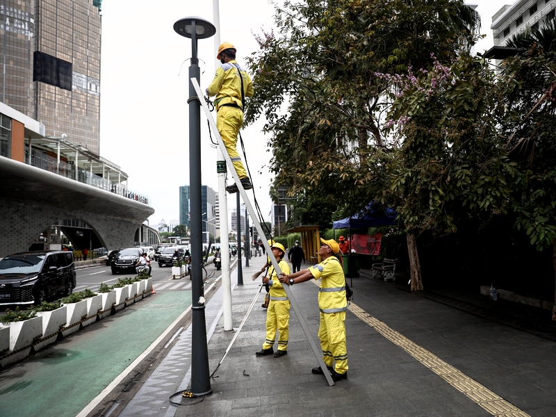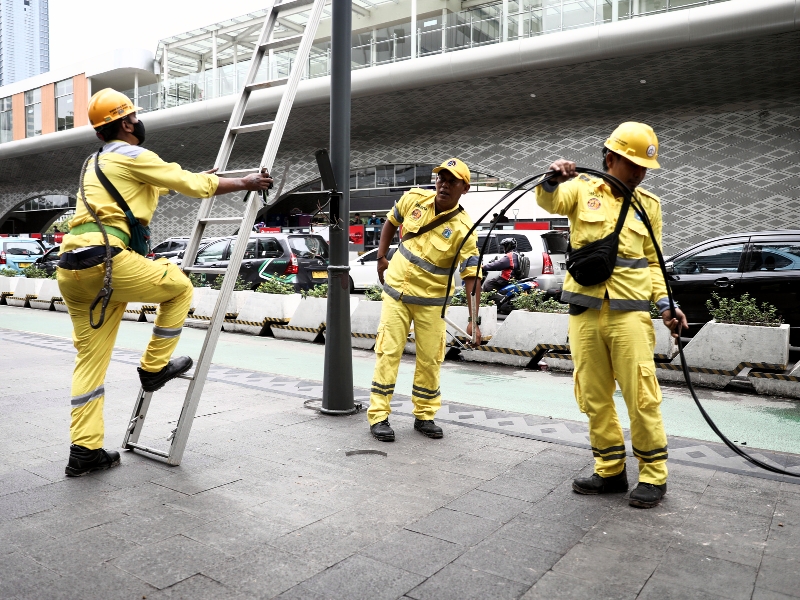 Perbaikan Sementara Lampu PJU di Jalan M.H. THamrin
