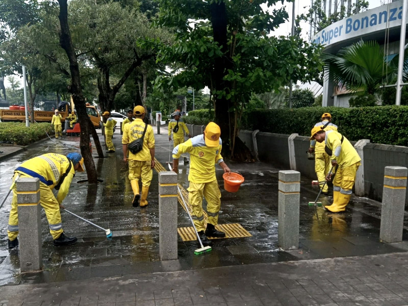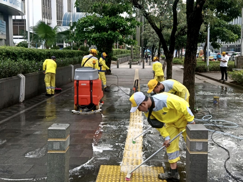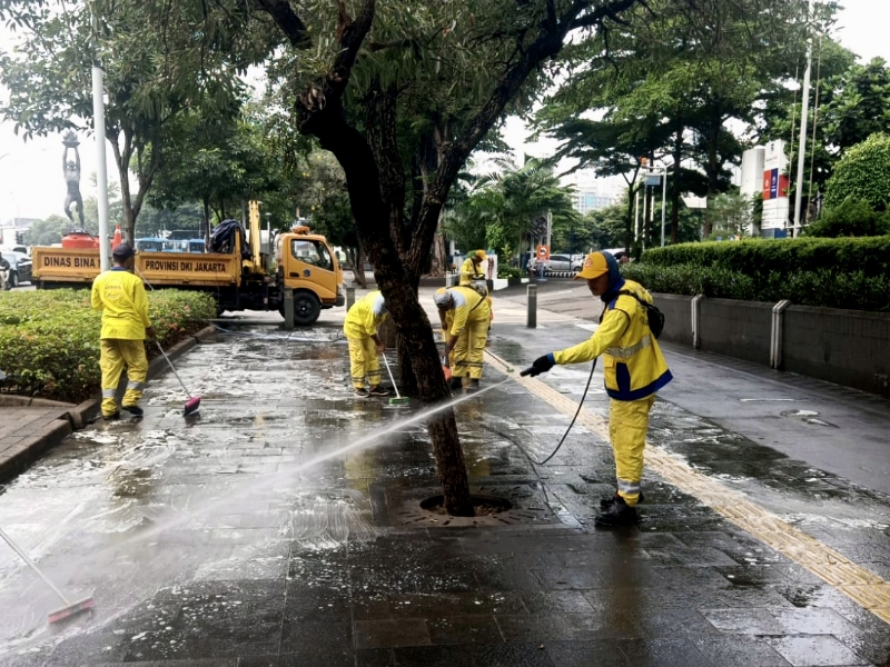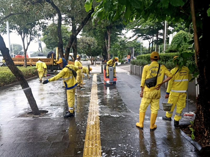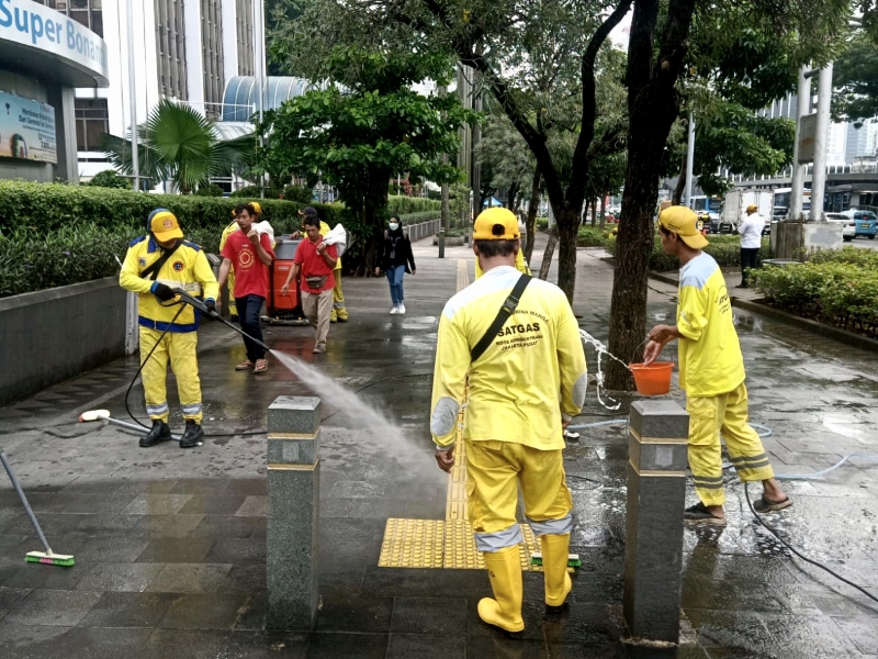 Sudin Bina Marga Jakpus Bersihkan Trotoar Sudirman