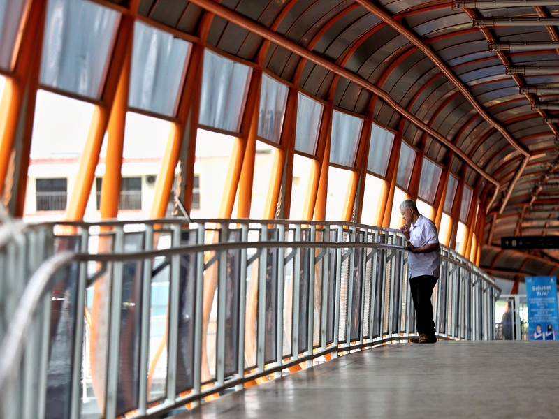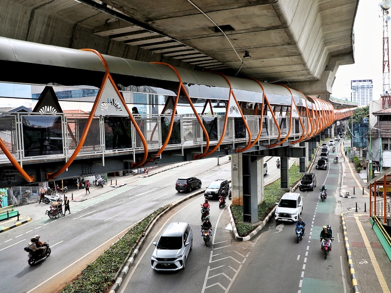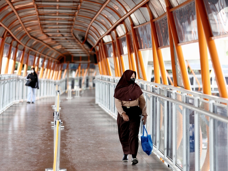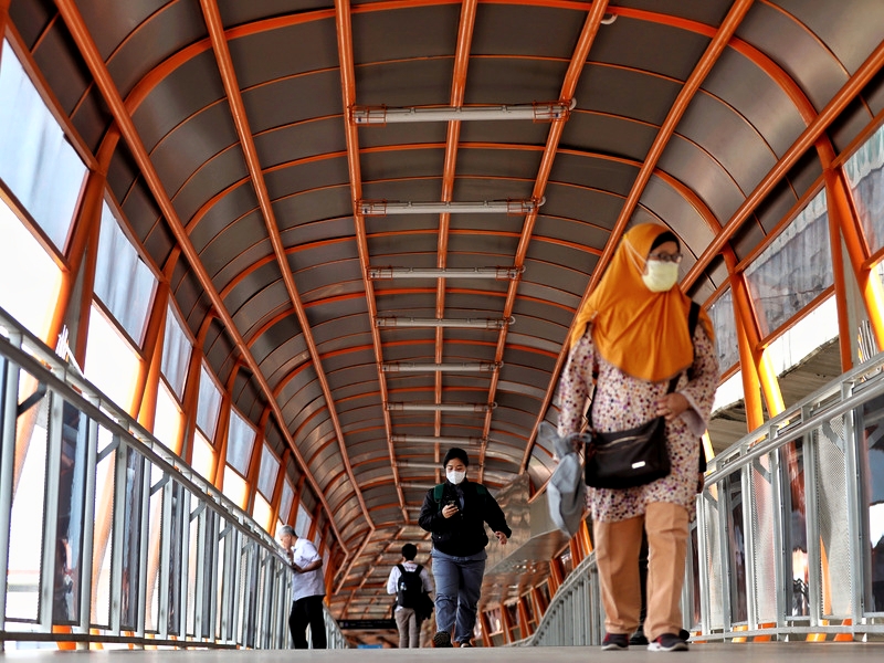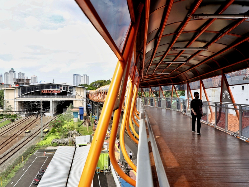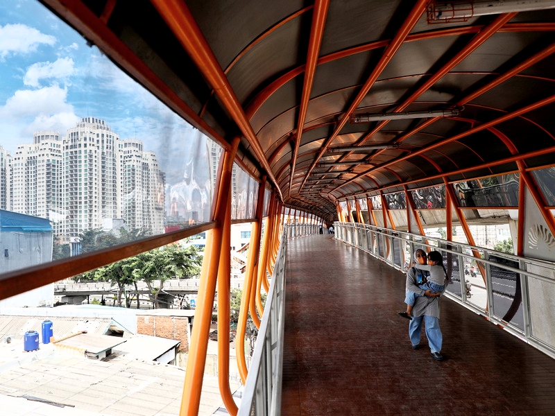 Sejumlah warga melintasi Skywalk Kebayoran, Jakarta Selatan, Rabu (8/2). PT Transportasi Jakarta (TransJakarta) memastikan warga tidak dikenakan biaya alias gratis saat melintasi Skywalk Kebayoran untuk memudahkan menyeberang jalan. (Foto:Andri Widiyanto/beritajakarta.id)
