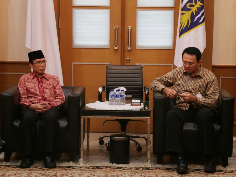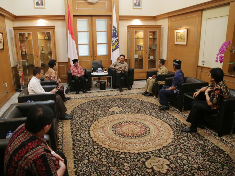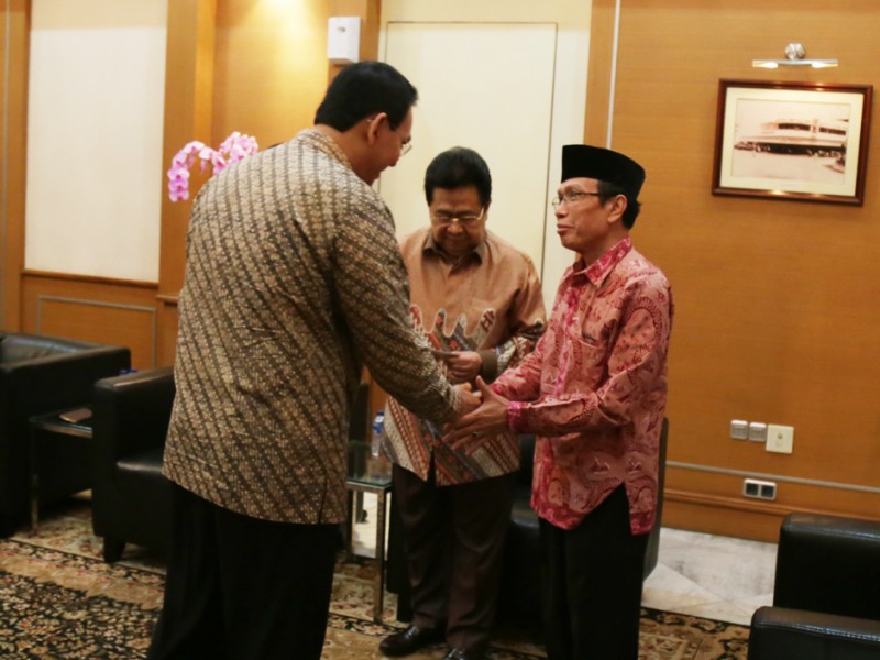 Gubernur DKI Jakarta, Basuki Tjahaja Purnama menerima pengurus Dewan Masjid Indonesia di Balaikota DKI Jakarta, Jalan Medan Merdeka Selatan, Gambir, Jakarta Pusat, Rabu (01/07/2015). Dalam pertemuan tersebut dilakukan pembahasan terkait sinergitas program Dewan Masjid Indonesia dengan Pemprov DKI Jakarta. (Foto: Reza/beritajakarta.com)