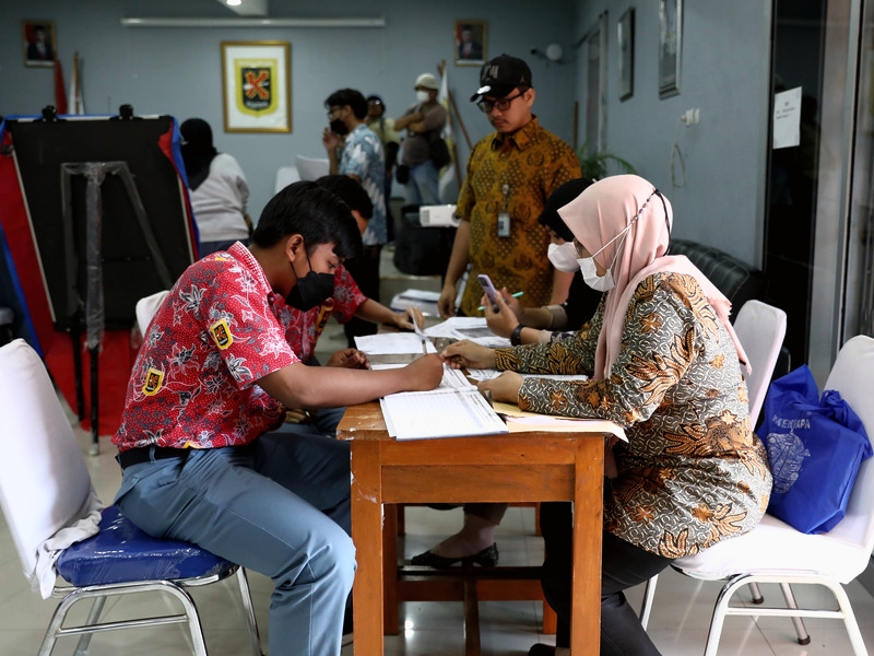 Suku Dinas (Sudin) Kependudukan dan Pencatatan Sipil (Dukcapil) Jakarta Pusat menggelar layanan jemput bola perekaman kartu tanda penduduk elektronik (KTP-el) di Yayasan Perguruan Ksatrya Lima Satu, Cempaka Putih, Jakarta Pusat, Kamis (9/2). Sebanyak 61 siswa SMA/SMK Ksatrya berusia 16 tahun ke atas melakukan perekaman KTP-el di aula sekolah. (Foto: Nugroho Sejati/beritajakarta.id)