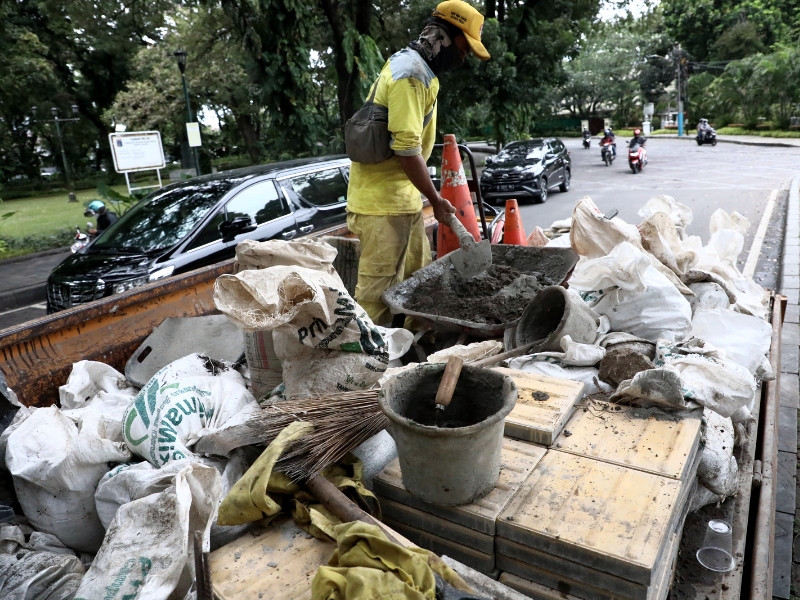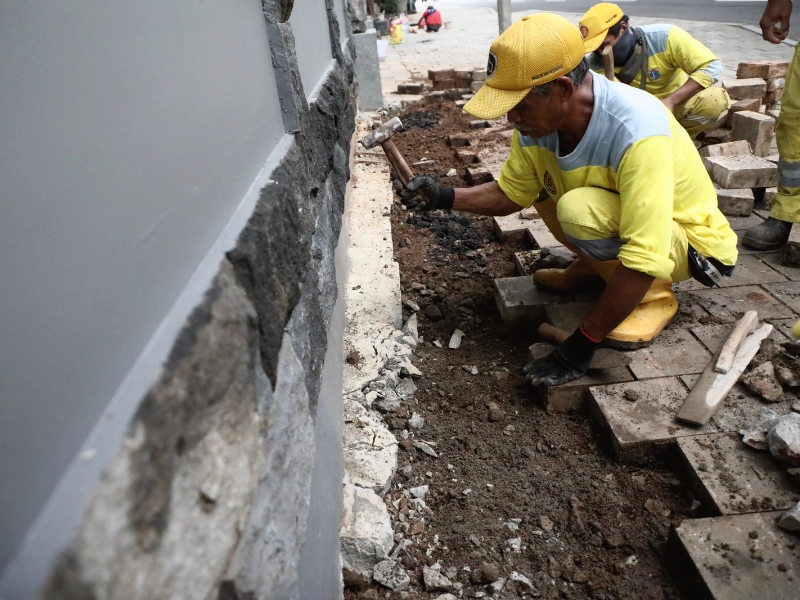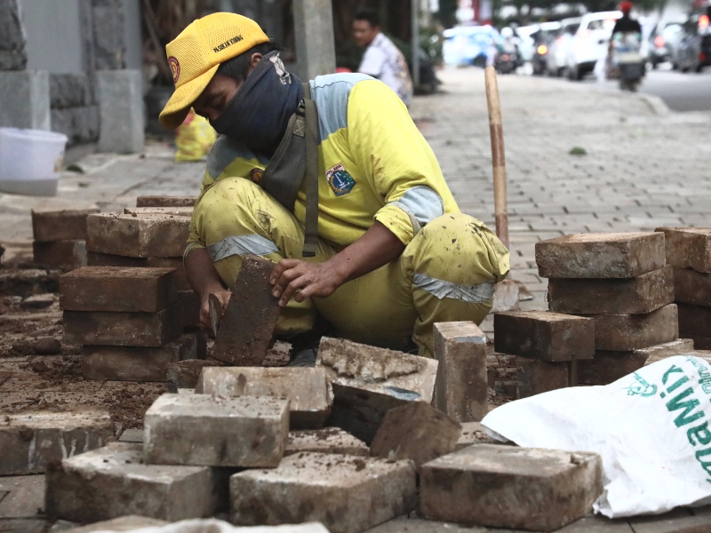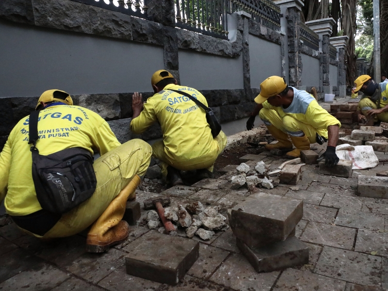 Satpel Bina Marga Menteng Perbaiki Trotoar Jalan Taman Suropati