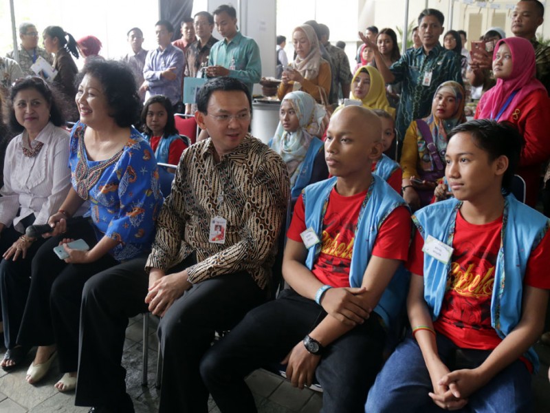 Kesibukan Basuki Tjahaja Purnama sebagai Gubernur DKI Jakarta tidak membuatnya mengilangkan perhatian kepada anak-anak. Terlebih kepada anak-anak yang tengah menderita penyakit khusus. Kali ini, Basuki meluangkan waktu untuk menyaksikan penampilan anak-anak penderita kanker dari Rumah Singgah Yayasan Kasih Anak Kanker Indonsia (YKAKI) di Balaikota DKI Jakarta, Kamis (02/07/2015). Penampilan anak-anak penderita kanker yang penuh semangat pun membuat Basuki bangga dan terharu.(Foto: Reza/beritajakarta.com)
