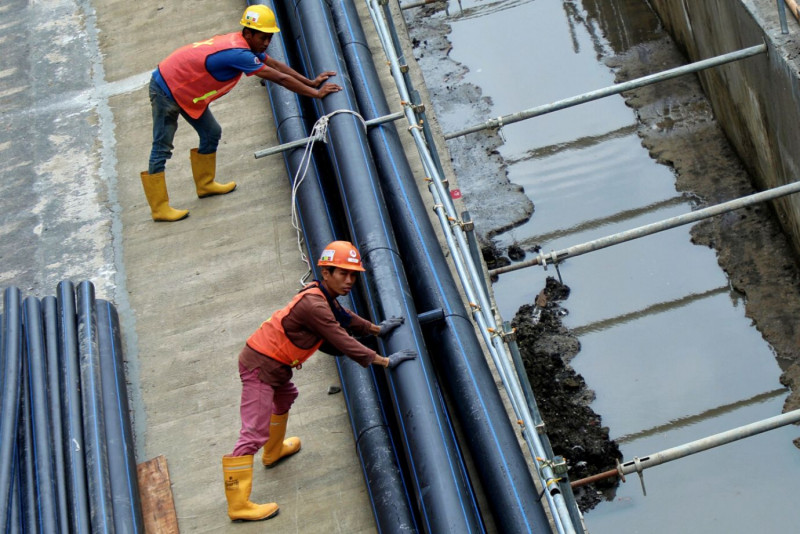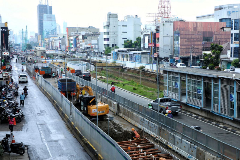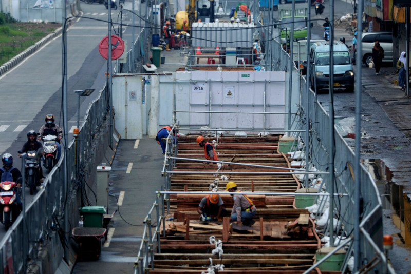 Suasana pengerjaan proyek MRT Fase 2A di kawasan Glodok, Kecamatan Taman Sari, Jakarta Barat, Kamis (16/2). Progres MRT Fase 2 seperti CP201 (Stasiun Thamrin dan Monas) mencapai 51 persen, CP 202 (Stasiun Harmoni, Sawah Besar, dan Mangga Besar) mencapai sembilan persen, sedang CP 203 (Stasiun Glodok dan Kota) mencapai 25,36 persen. (Foto: Andri Widiyanto/beritajakarta.id)