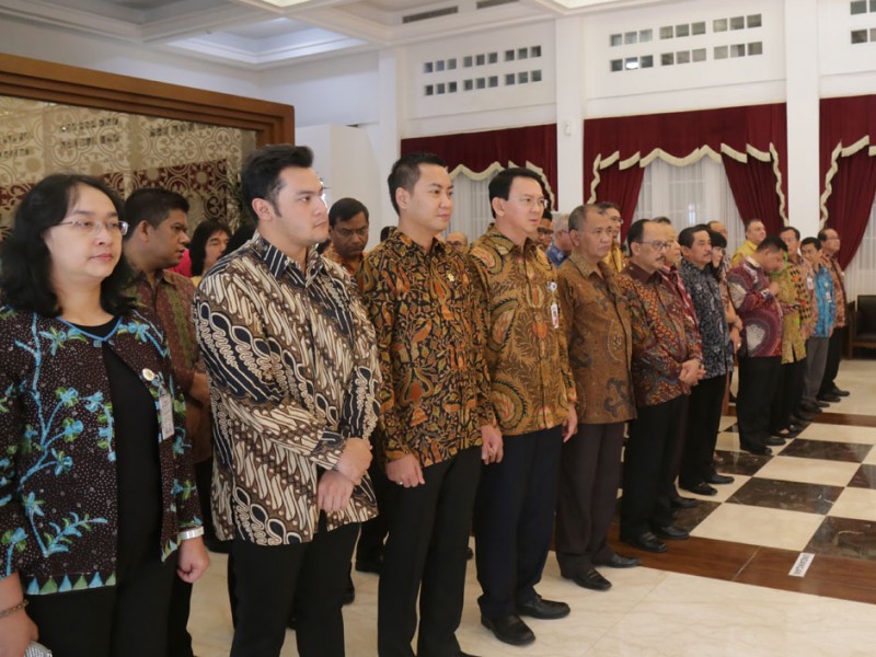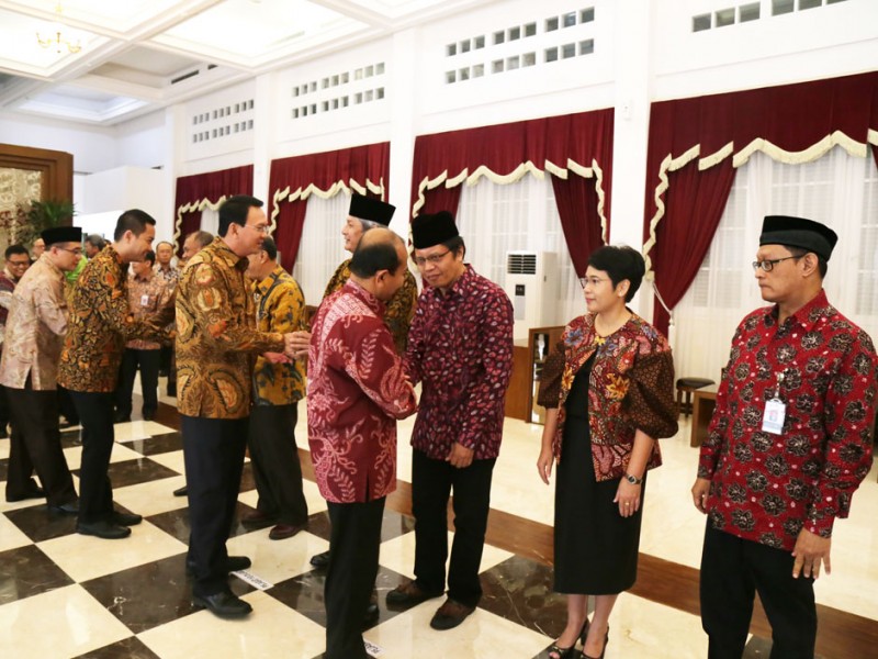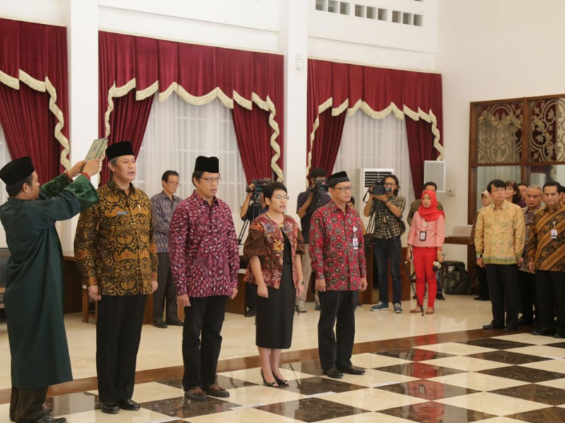 Gubernur DKI Jakarta, Basuki Tjahaja Purnama menghadiri upacara pengambilan sumpah jabatan serta pelantikan Kepala dan Deputi Lembaga Kebijakan Pengadaan Barang/Jasa Pemerintah (LKPP). Prosesi pelantikan berlangsung di Ruang Rapat Pimpinan, Kementerian PPN/Bappenas, Jalan Taman Suropati, Menteng, Jakarta Pusat, Jumat (03/07/2015). (Foto: Reza / Beritajakarta.com)
