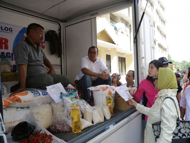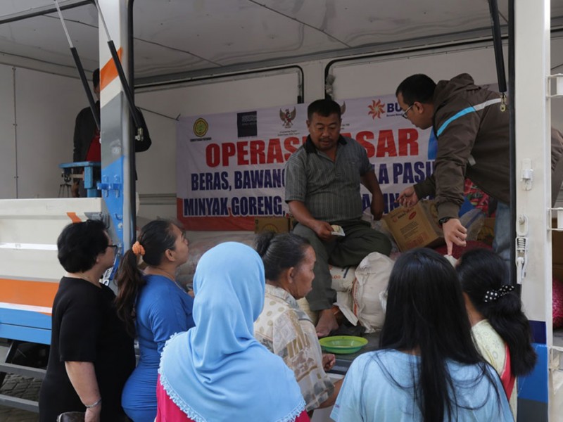 Secara simbolis Veronica memberikan sembako murah kepada warga