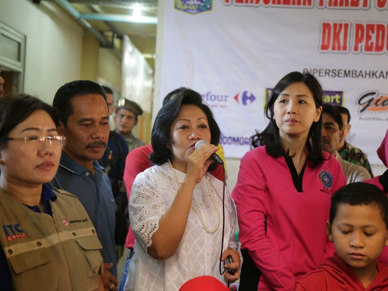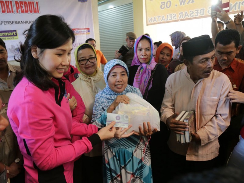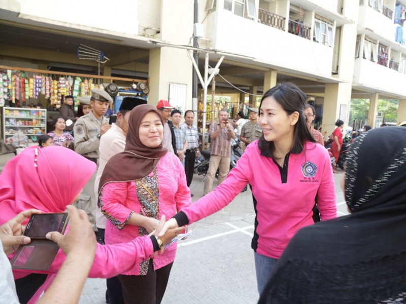 Ketua TP PKK Provinsi DKI Jakarta, Veronica Tjahaja Purnama melakukan kunjungan ke Rusun Cipinang besar selatan dan meninjau operasi pasar di Rusun Cipinang Besar Selatan, Jatinegara, Jakarta Timur, Sabtu (04/07/2015).
