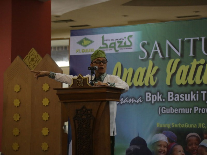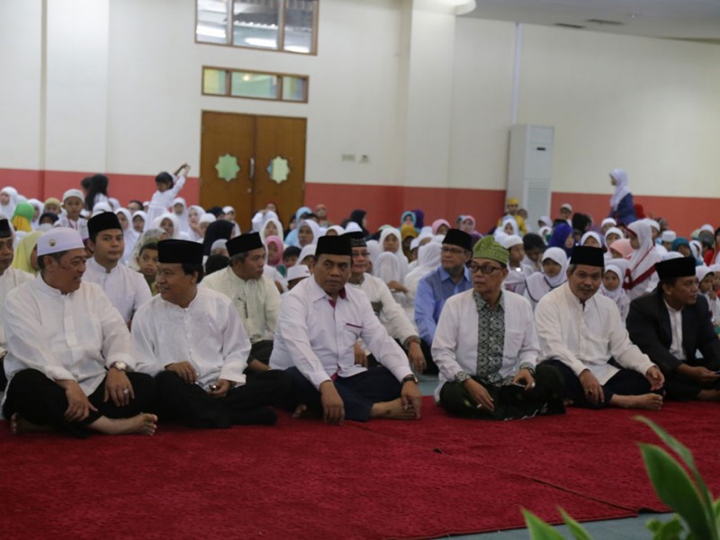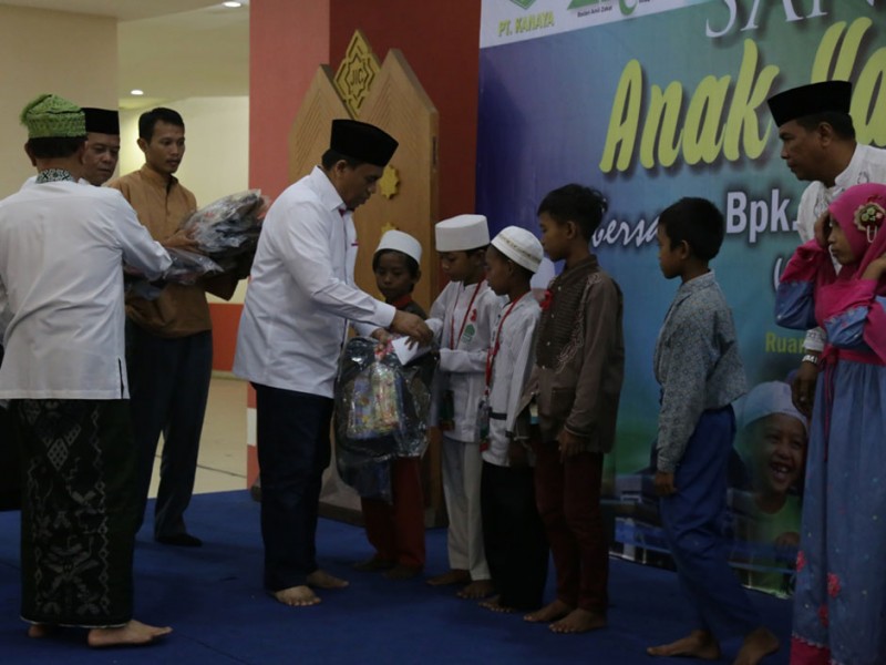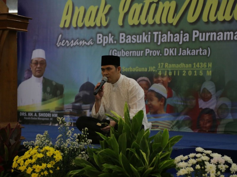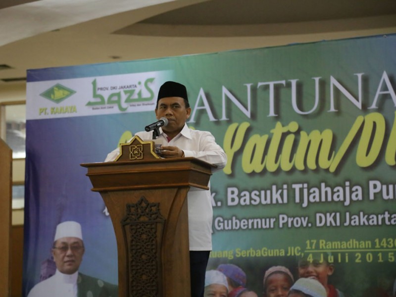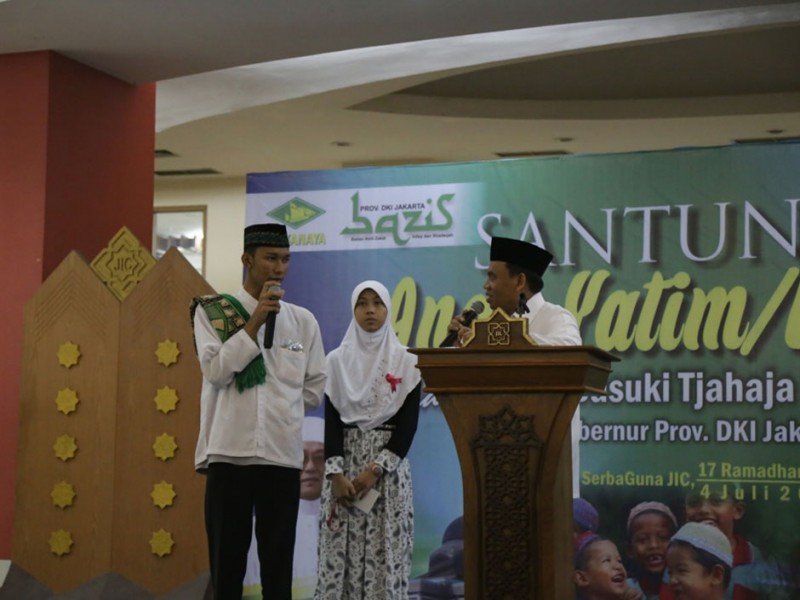 Sebanyak 500 anak yatim piatu dan kaum dhuafa mendapat santunan dari Pemerintah Provinsi (Pemprov) DKI Jakarta saat acara buka puasa bersama di Jakarta Islamic Center Koja Jakarta Utara, Sabtu 4 Juli 2015. Santuanan kepada ratusan anak yatim piatu dan kaum dhuafa ini diserahkan secara langsung oleh Sekretaris Daerah Provinsi DKI Jakarta, Saefullah yang disak sikan oleh Kepala Badan Manajemen Jakarta Islamic Center KH Shodri. Anak yatim piatu dan dhuafa tersebut berasal dari sejumlah wilayah di DKI Jakarta, terdiri dari anak-anak usia sekolah dari SD sampai SMA. Masing-masing diberikan santunan berupa uang sebesar Rp 200 ribu dan perlengkapan sekolah. (Foto: Reza / Beritajakarta.com)