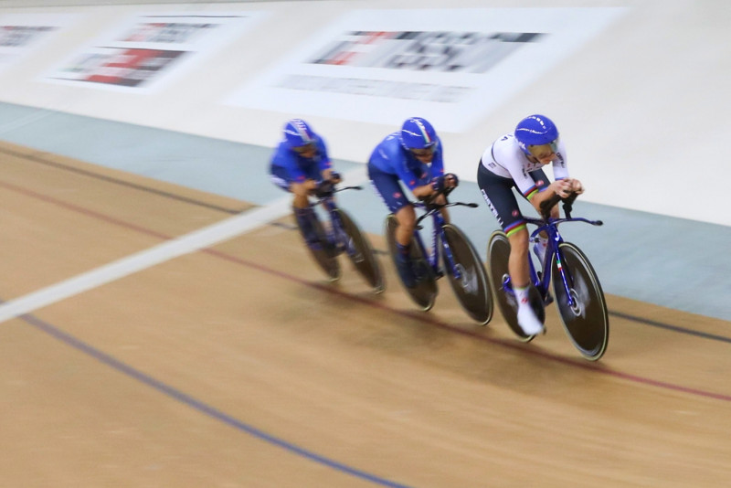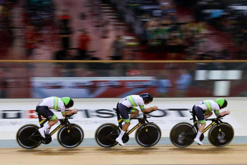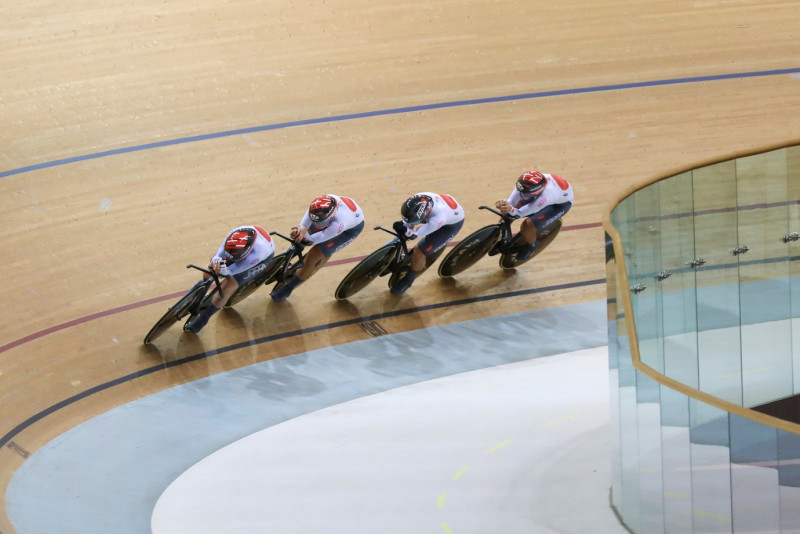 Sejumlah tim balap sepeda dari berbagai negara beraksi dalam babak kualifikasi Union Cycliste Internationale (UCI) Track Nations Cup 2023 kategori Team Pursuit di Jakarta International Velodrome, Pulo Gadung, Jakarta Timur, Kamis (23/2). Jakarta menjadi tuan rumah gelaran balap sepeda tingkat dunia UCI Track Nations Cup pada tanggal 23-26 Februari 2023. (Foto: Nugroho Sejati/beritajakarta.id)
