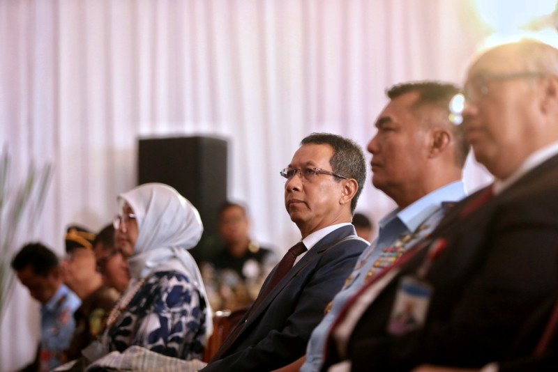 Penjabat (Pj) Gubernur DKI Jakarta, Heru Budi Hartono menghadiri upacara pengukuhan Kepala Perwakilan Bank Indonesia Provinsi DKI Jakarta, di Kantor Perwakilan Bank Indonesia Provinsi DKI Jakarta di Jalan Prajurit KKO Usman dan Harun, Jakarta Pusat, Jumat (24/2). Dalam upacara pengukuhan ini Arlyana Abubakar diangkat sebagai Kepala Perwakilan Bank Indonesia Provinsi DKI Jakarta menggantikan Onny Widjanarko. (Foto: Andri Widiyanto/beritajakarta.id)
