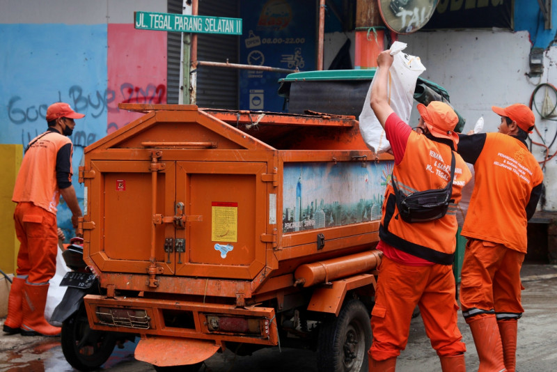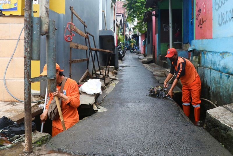 Petugas PPSU Tangani Genangan di Tegal Parang hingga Surut