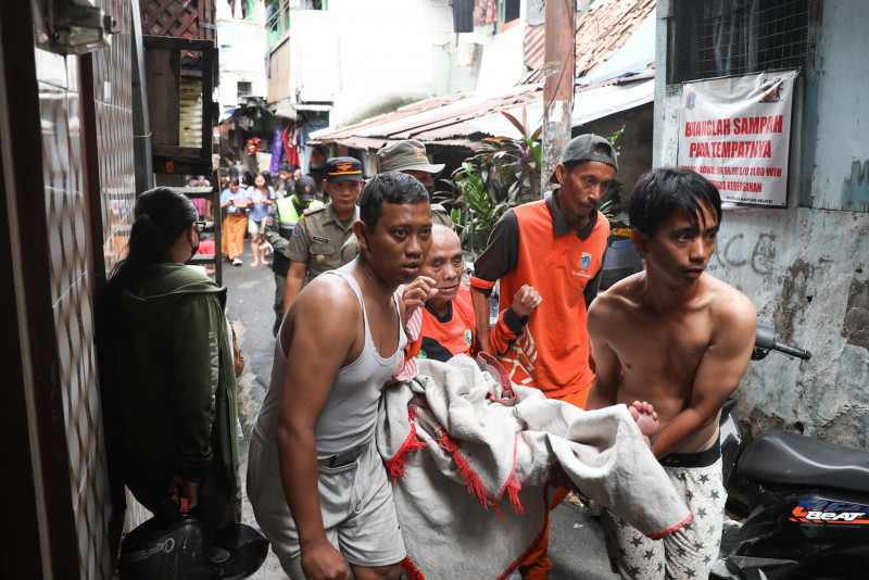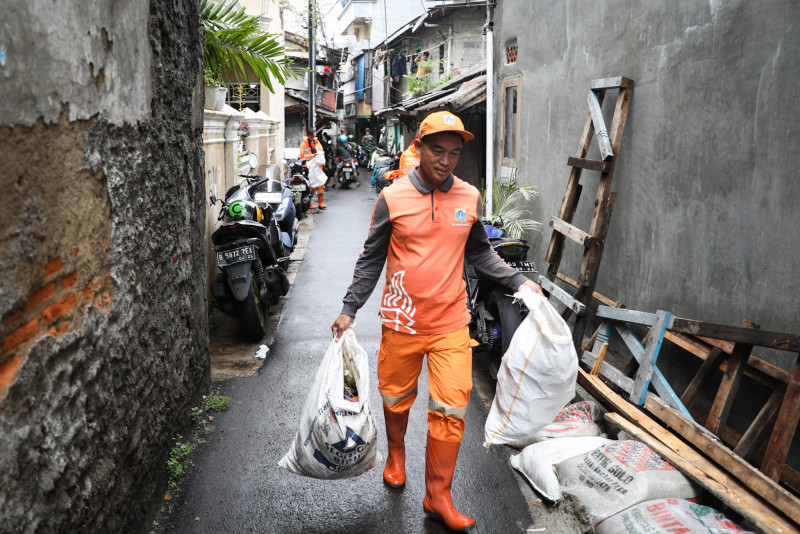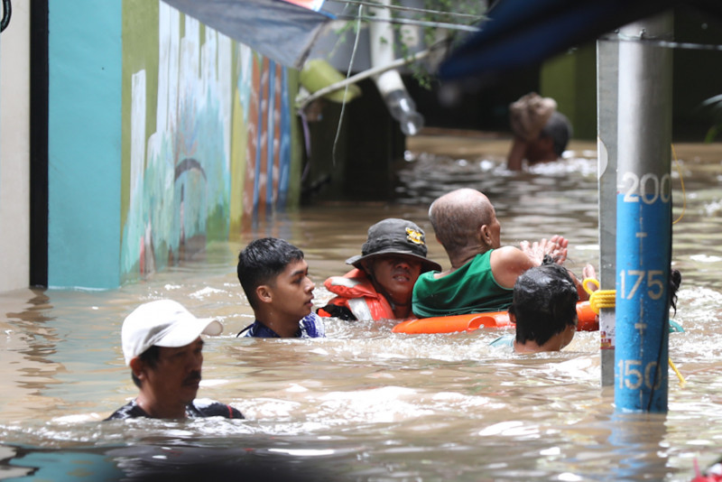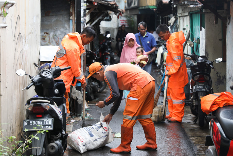 Petugas Gabungan Tangani Banjir di Kampung Melayu