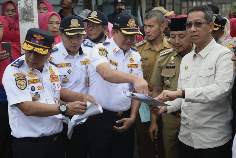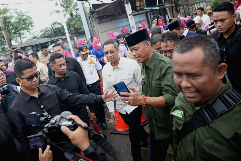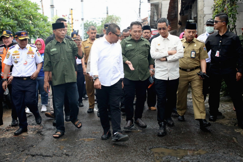 Penjabat (Pj) Gubernur Provinsi DKI Jakarta, Heru Budi Hartono meninjau Jalan Semanan Raya, tepatnya persimpangan Stasiun Kalideres, Jakarta Barat, Senin (27/2). Peninjauan dilakukan untuk melihat situasi lalu lintas di perlintasan kereta api saat jam sibuk. Dalam peninjauan ini Heru didampingi Anggota DPRD DKI Jakarta, Lukmanul Hakim, Wakil Kepala Dinas Perhubungan, Chaidir dan Wali Kota Jakarta Barat, Yani Wahyu Purwoko serta jajaran Pemkot Jakarta Barat. (Foto: Mochamad Tresna Suheryanto/beritajakarta.id)
