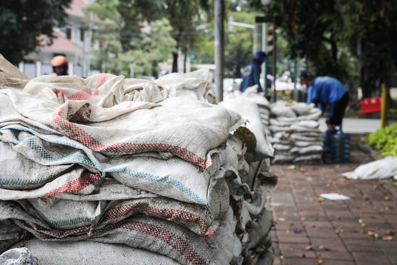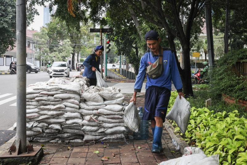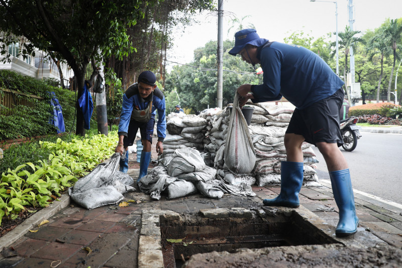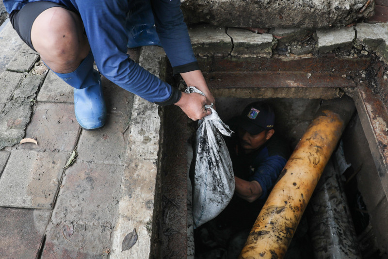 Sejumlah petugas Suku Dinas Sumber Daya Air (Sudin SDA) Jakarta Pusat menguras saluran di Jalan Haji Agus Salim, Kelurahan Gondangdia, Menteng, Jakarta Pusat, Senin (27/2). Pengurasan yang saluran sepanjang 12 meter yang dikerjakan oleh lima petugas Sudin SDA Jakpus tersebut untuk menambah kapasitas saluran serta mencegah genangan. (Foto: Nugroho Sejati/beritajakarta.id)
