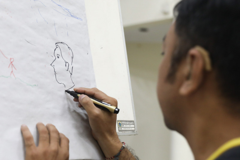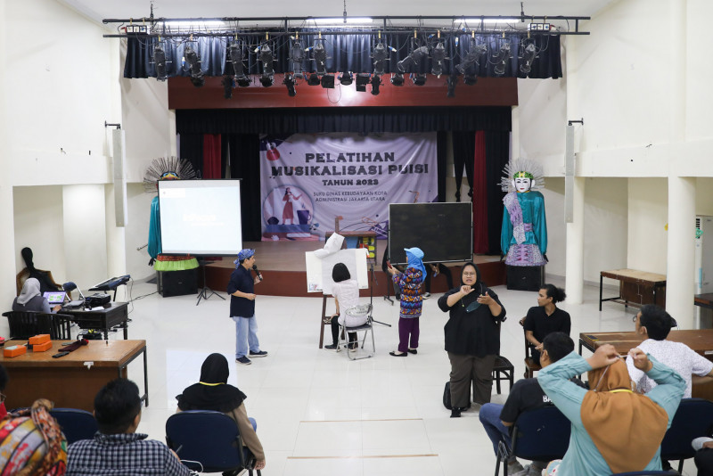Suku Dinas (Sudin) Kebudayaan Jakarta Utara menggelar pelatihan seni musikalisasi puisi untuk penyandang disabilitas di Gedung Aki Tirem, Pusat Pelatihan Seni Budaya (PPSB), Jalan Yos Sudarso, Tanjung Priok, Jakarta Utara, Rabu (1/3). Sebanyak 30 peserta yang terdiri dari penyandang tunanetra, tunarungu, tunawicara, tunadaksa, dan tunagrahita tersebut mengikuti pelatihan selama sepuluh hari. (Foto: Nugroho Sejati/beritajakarta.id)