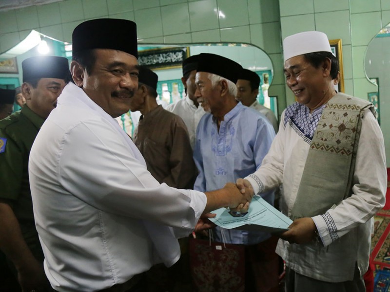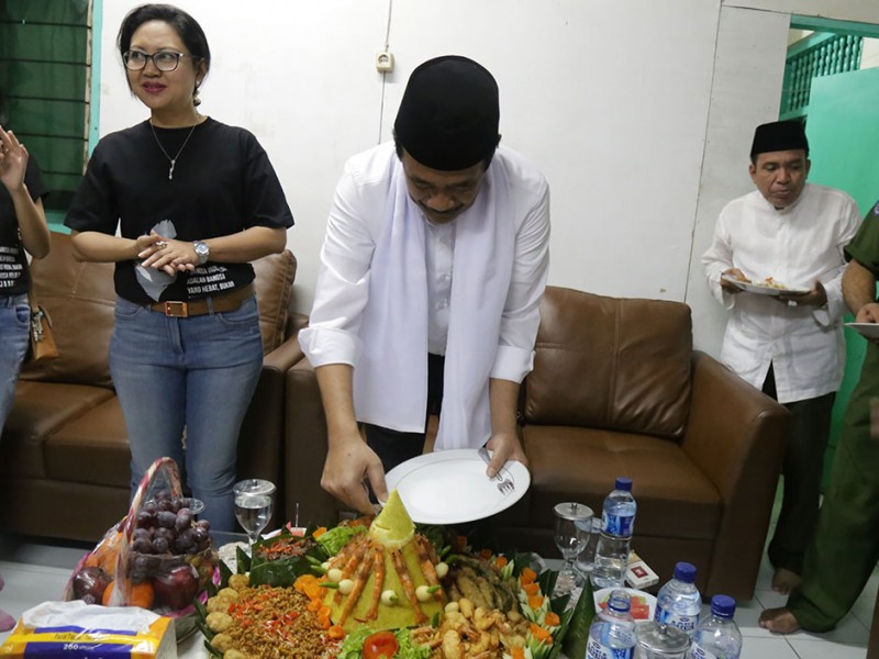 Wakil Gubernur DKI Jakarta, Djarot Saiful Hidayat melakukan Safari Ramadhan di Masjid Al-Mansur, Kelurahan Jembatan lima, Kecamatan Tambora, Jakarta Barat (06/07/2015). Safari Ramadhan diisi dengan kegiatan buka Puasa bersama dan Sholat Maghrib berjamaah. Dalam kesempatan tersebut Djarot juga menyerahkan bantuan untuk kemakmuran masjid. Dalam kesempatan tersebut, Djarot yang pada hari ini berulang tahun mendapatkan surprise dari Happy Farida Hidayat, istrinya. (Foto: R eza/beritajakarta.com)