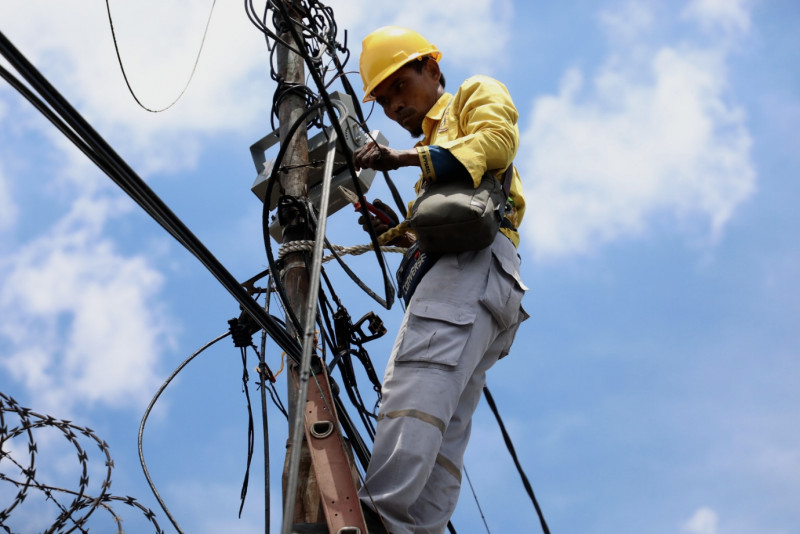 Petugas Bina Marga Pasang Tiga Lampu Sorot di Lokasi Kebakaran Plumpang