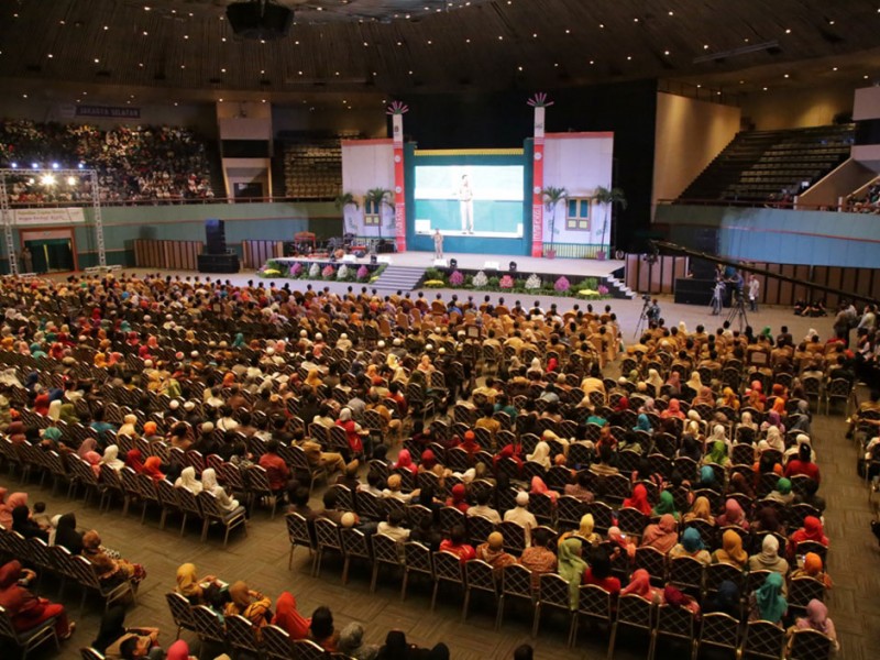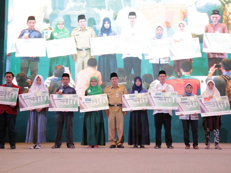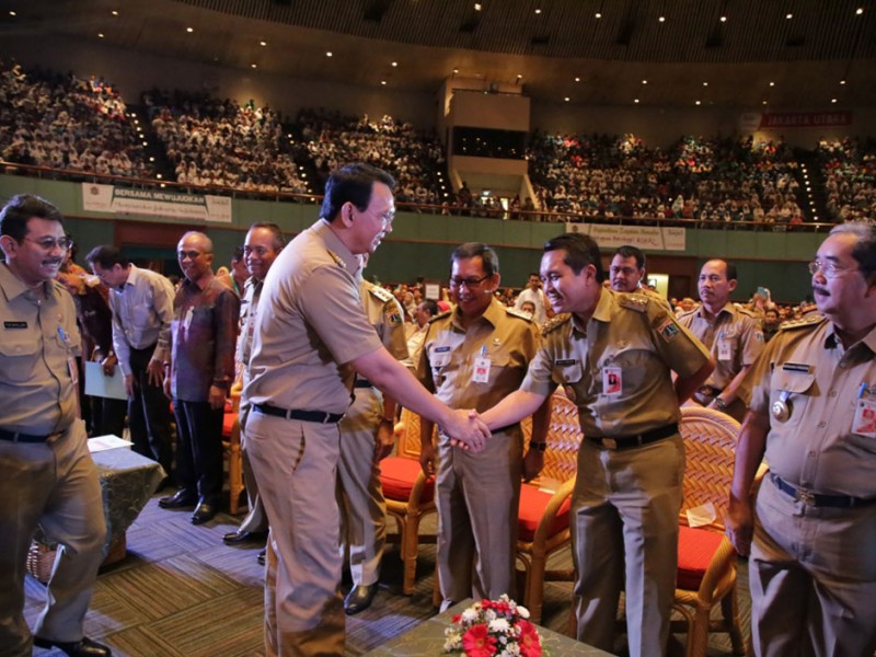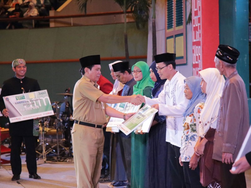 Gubernur DKI Jakarta Basuki Tjahaja Purnama menyerahkan bantuan kepada Mustahik yang disalurkan melalui Badan Amil, Zakat, Infak dan Sedekah (Bazis) Provinsi DKI Jakarta. Penyerahan bantuan diberikan dengan sistem non tunai dalam acara bertajuk Peduli Umat Tahun 2015 di Plennary Hall Jakarta Convention Center, Jakarta Pusat, Rabu (08/07/20150. Dalam kesempatan tersebut, Basuki memberikan sedekah senilai Rp 50 juta.(Foto: Yopie / Beritajakarta.com)