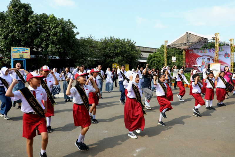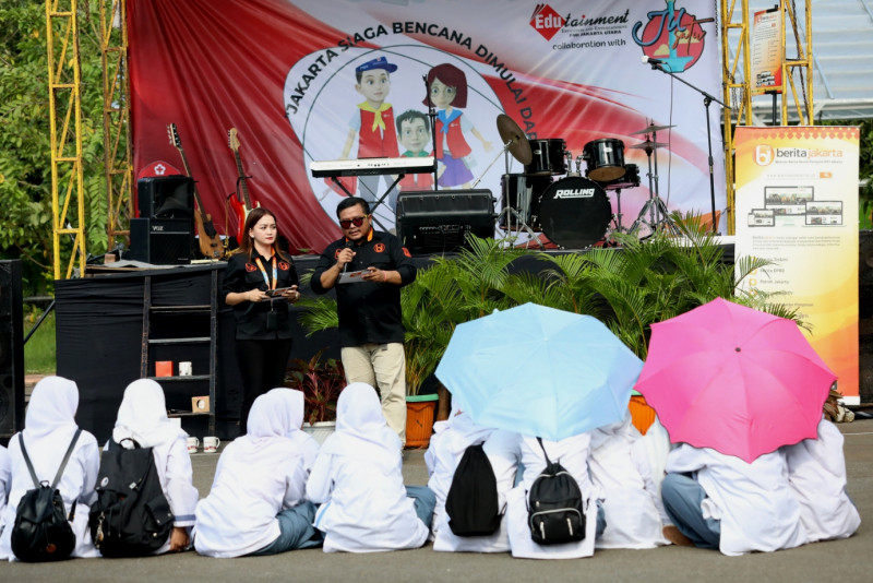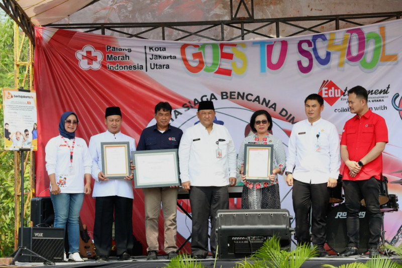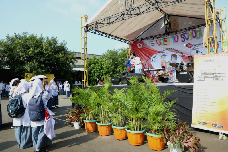 Palang Merah Indonesia (PMI) Jakarta Utara menggelar acara PMI Goes To School di Sekolah Menengah Kejuruan Negeri (SMKN) 56 Jakarta, dalam kegiatan ini para murid diajarkan kesiapsiagaan bencana, Jumat (10/3). Selain itu acara diisi dengan launching lagu Kantin Sehat dan tim sosialisasi Website Resmi Pemprov DKI Jakarta yakni beritajakarta.id dan beritajakarta.tv. (Foto:Mochmad Tresna Suheryanto/beritajakarta.id)