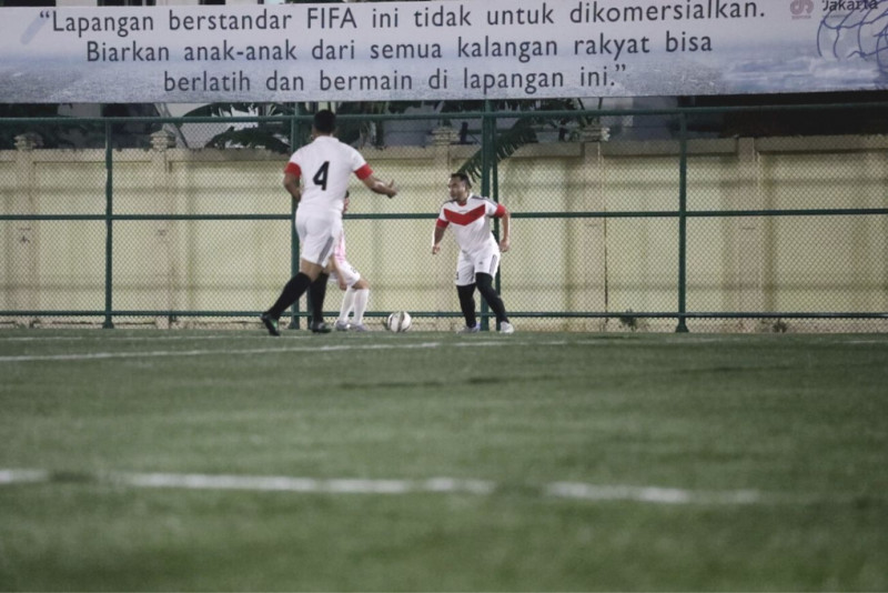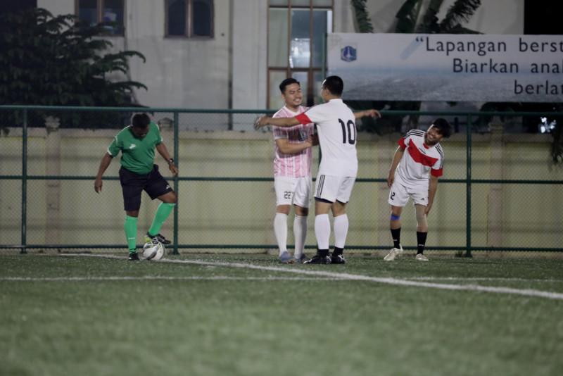 Kesebelasan Dinas Komunikasi, Informatika, dan Statistik (Diskominfotik) DKI Jakarta dan kesebelasan Dinas Kependudukan dan Pencatatan Sipil (Disdukcapil) DKI Jakarta melakukan pertandingan persahabatan di Lapangan Sepakbola Wijaya Kusuma atau Romsol, di Jalan Anggrek Garuda, Kelurahan Kemanggisan, Kecamatan Palmerah, Jakarta Barat, Jumat (10/3) malam. Pertandingan dimenangkan oleh Kesebelasan Dinas Komunikasi, Informatika, dan Statistik (Diskominfotik) DKI Jakarta dengan skor telak 6-3. (Foto:Mochmad Tresna Suheryanto/beritajakarta.id)