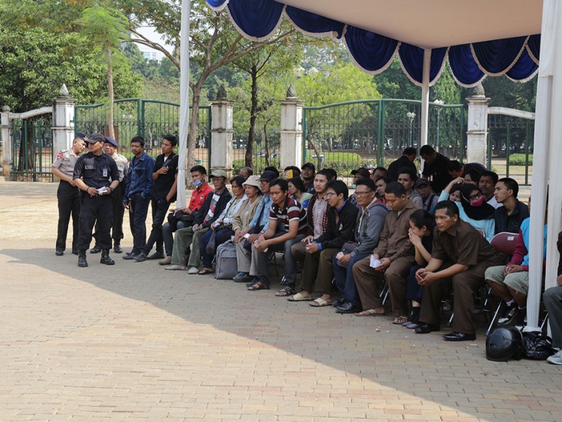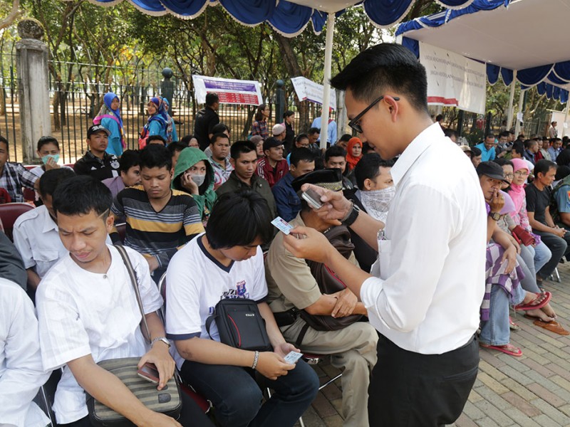 Bank Indonesia memfasilitasi warga yang ingin menukarkan uang pecahan kecil yang biasa diberikan kepada sanak saudara khususnya anak-anak saat momen Hari Raya Idul Fitri. Bank Indonesia bekerjasama dengan 13 Bank lainnya, diantaranya Bank DKI BCA, BNI, BRI, CIMB Niaga dan Bank Permata membuka loket penukaran uang di Lapangan Ex IRTI Monas, Gambir, Jakarta Pusat. Loket penukaran uang buka mulai pukul 09.00 hingga pukul 13.00. (Foto: Reza/beritajakarta.com)