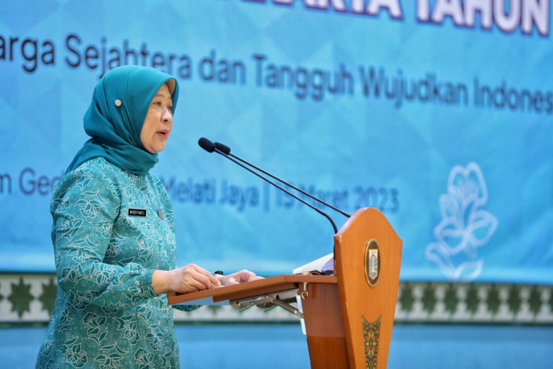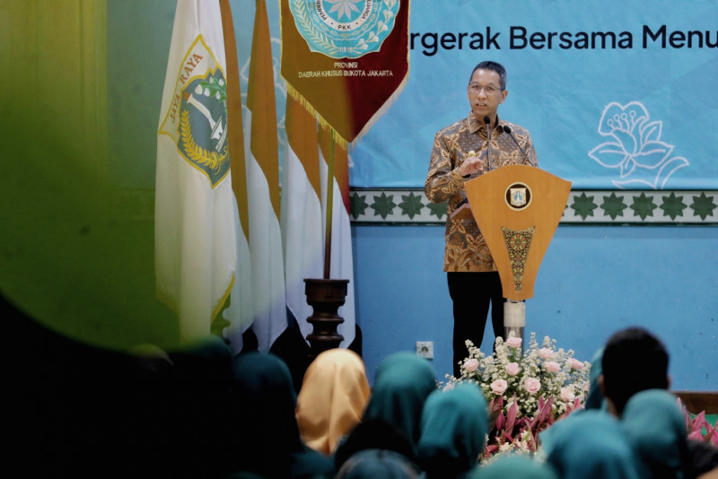 Penjabat (Pj) Gubernur DKI Jakarta, Heru Budi Hartono menghadiri peringatan Hari Kesatuan Gerak (HKG) Pemberdayaan Kesejahteraan Keluarga (PKK) Provinsi DKI Jakarta di Auditorium Gedung PKK Melati Jaya, Jalan Kebagusan Raya, Pasar Minggu, Jakarta Selatan, Rabu (15/3). Peringatan yang mengusung tema ”Bergerak Bersama menuju keluarga sejahtera dan tangguh wujudkan Indonesia tumbuh”. tersebut digelar secara luring dan daring. (Foto: Andri Widiyanto/beritajakarta.id)
